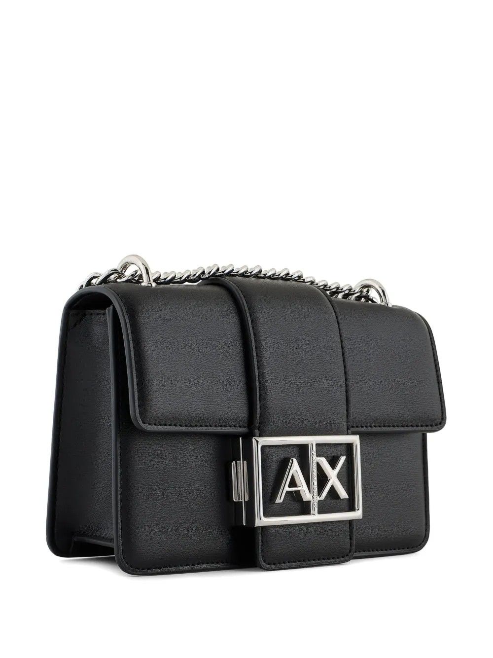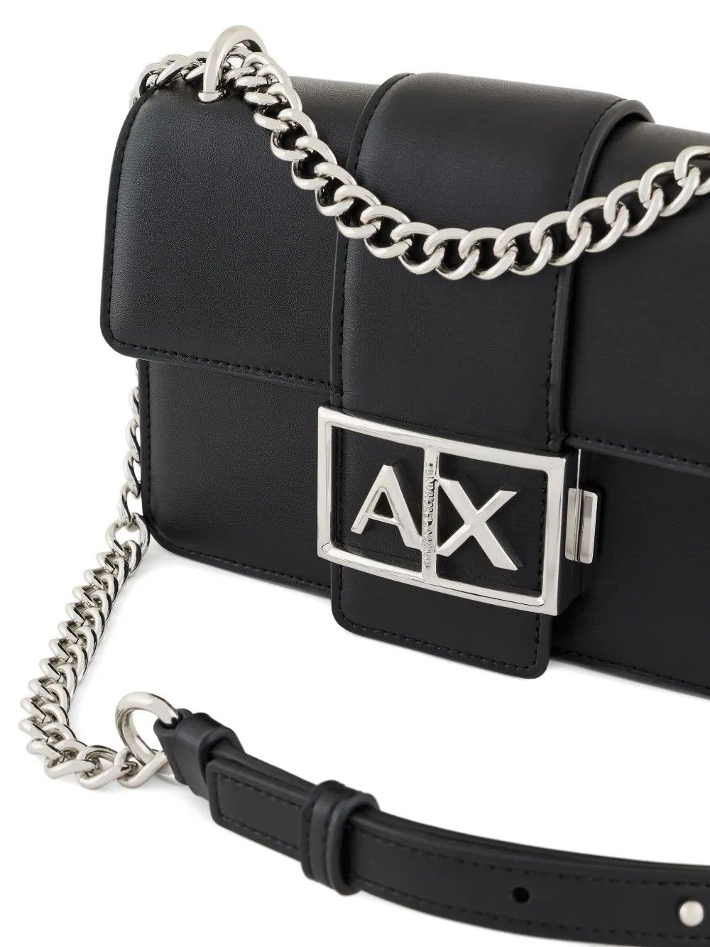 Shoulder bag in faux leather by Armani Exchange, compact and sophisticated, perfect to elevate any outfit with style. The chain strap adds a refined touch, while the front metal logo provides a modern and distinctive detail. Finished with a clasp closure for practicality and security, in an elegant 19 x 5.5 x 13 cm size.