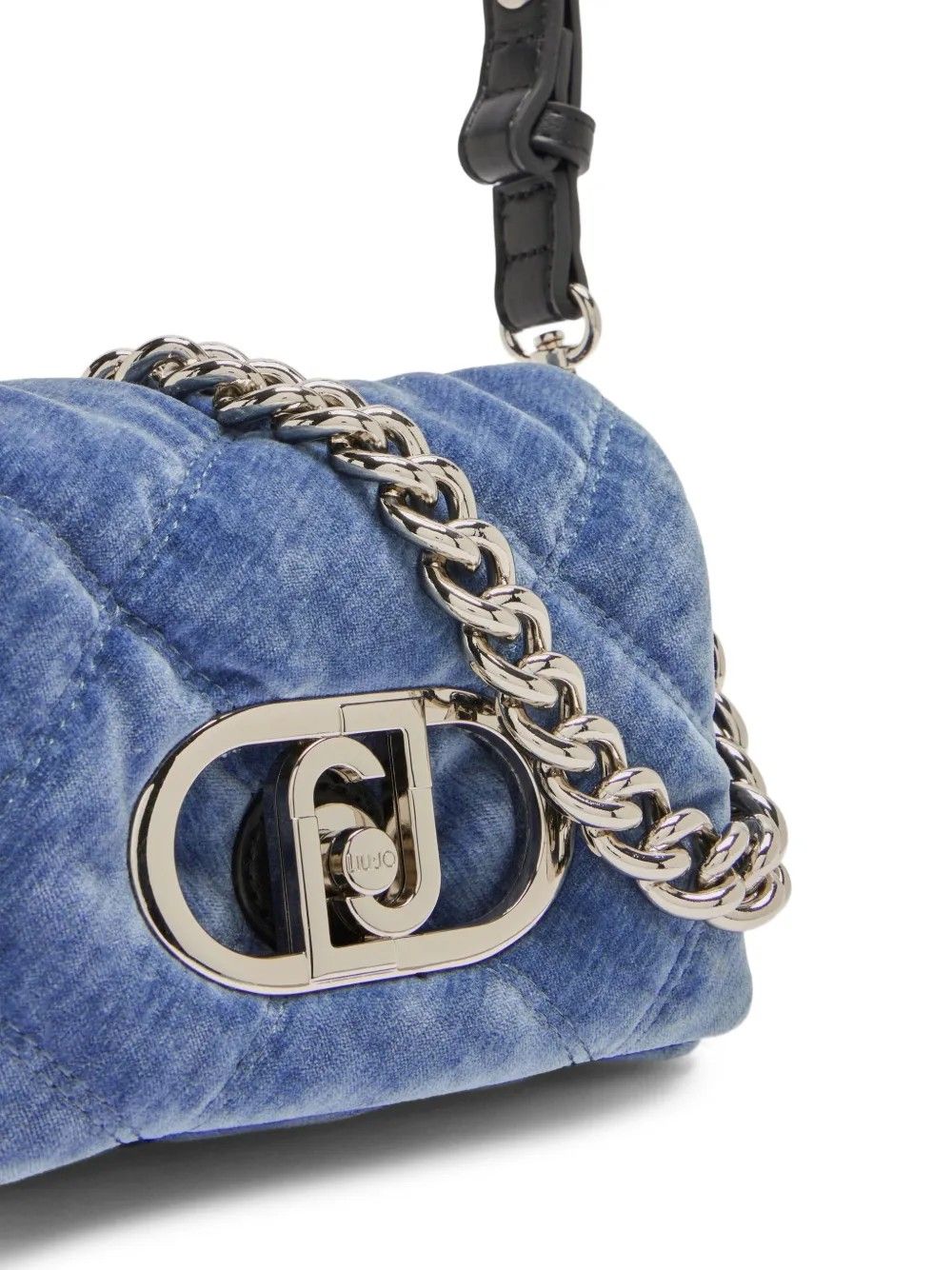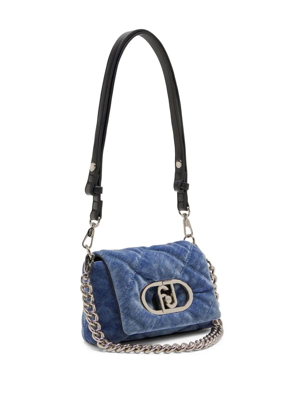 Quilted denim shoulder bag with a modern and stylish design.Flap closure adds an elegant and practical touch.Removable strap allows for shoulder or crossbody wear.Compact size perfect for casual and chic looks.Made of durable fabric with refined finishes.Dimensions: 19 x 13 x 6 cm.