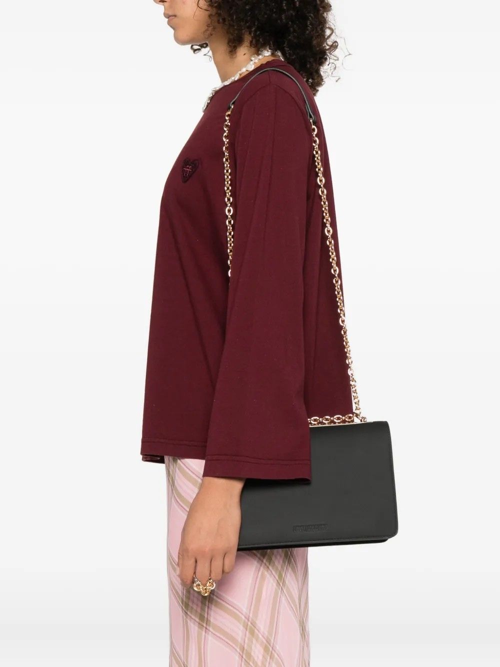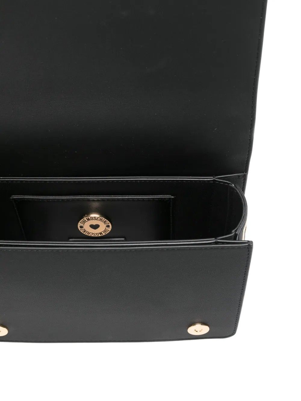 Love Moschino small shoulder bag, crafted from calf leather and polyurethane with refined finishes.Flap closure and gold-tone logo plaque add an iconic touch.Chain strap (51 cm) gives a sleek, contemporary look.Compact yet functional design, ideal for any occasion.Dimensions 23x16x8 cm, perfect for daily essentials.A statement accessory blending style and practicality.