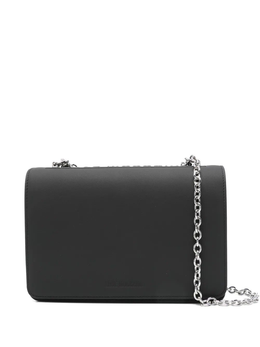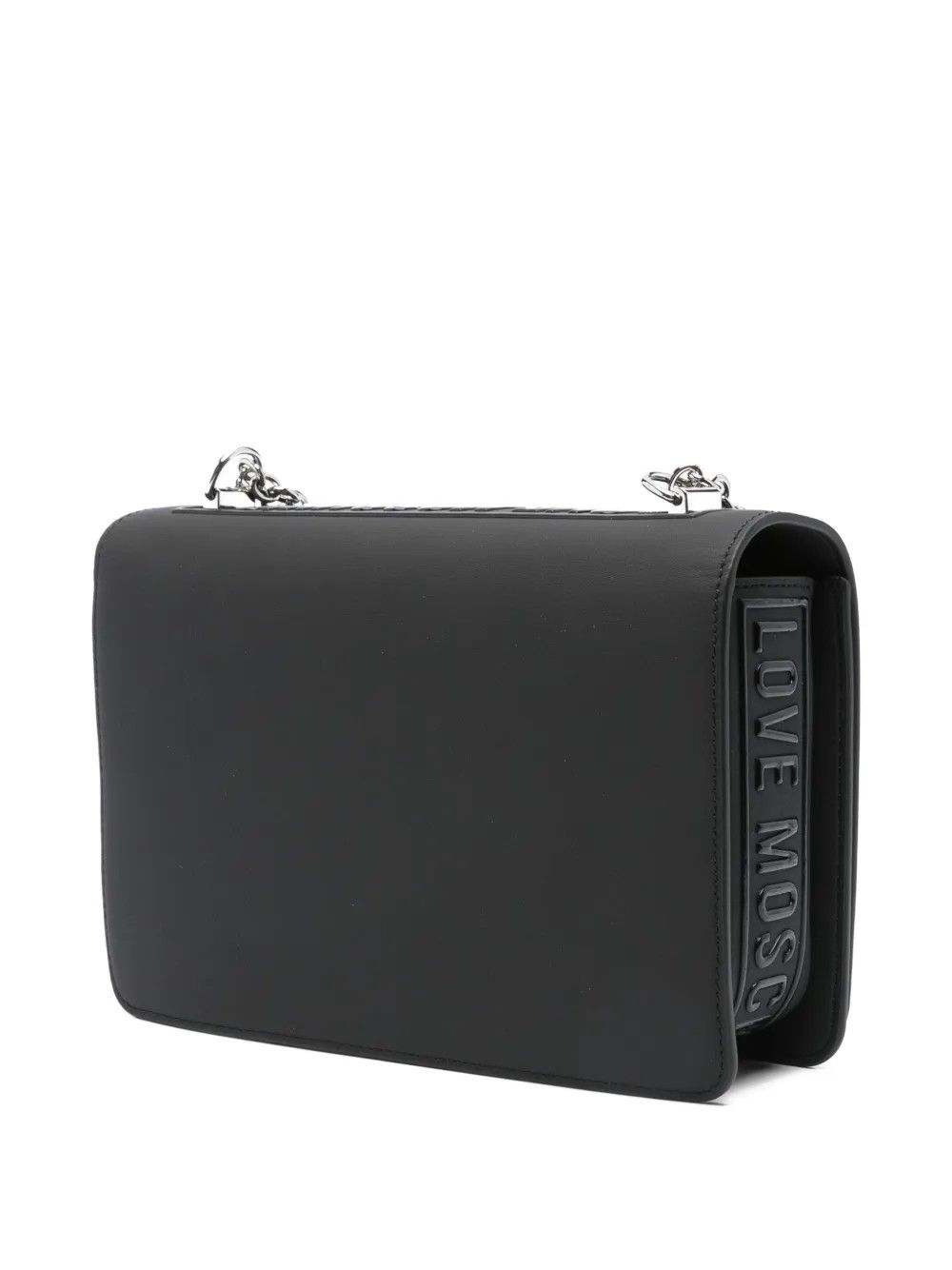 Love Moschino shoulder bag, crafted from calf leather and polyurethane with a clean rectangular silhouette.Flap closure and front logo plaque offer signature appeal.Chain strap and heart-shaped details elevate the design.Iconic and feminine, perfect to finish elegant or casual looks.Durable materials and refined finishes for lasting style.A chic accessory blending romance and modern flair.