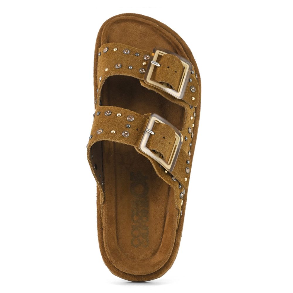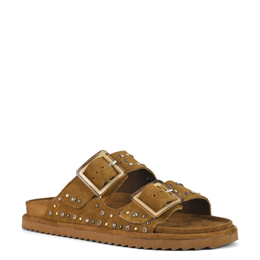 TWO BUCKLE SANDAL WITH STUDS #TAN