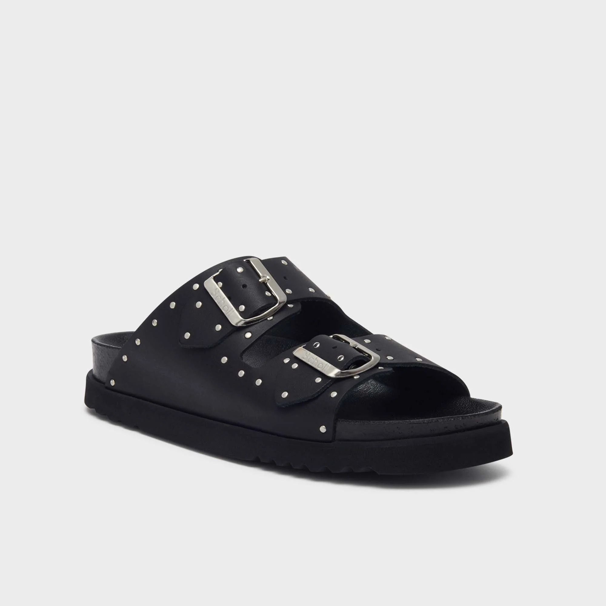 The two-strap summer sandals are the perfect choice for those seeking comfort, practicality, and style on warmer days.The adjustable leather straps with small stud details gently wrap the foot, ensuring a secure and customizable fit.The leather footbed provides softness and a natural feel to the touch.The cork and EVA sole offers lightness and support for lasting comfort.The low 10 mm heel makes them ideal for everyday wear without compromising on a clean, essential design.A versatile model designed to accompany every step with understated elegance.