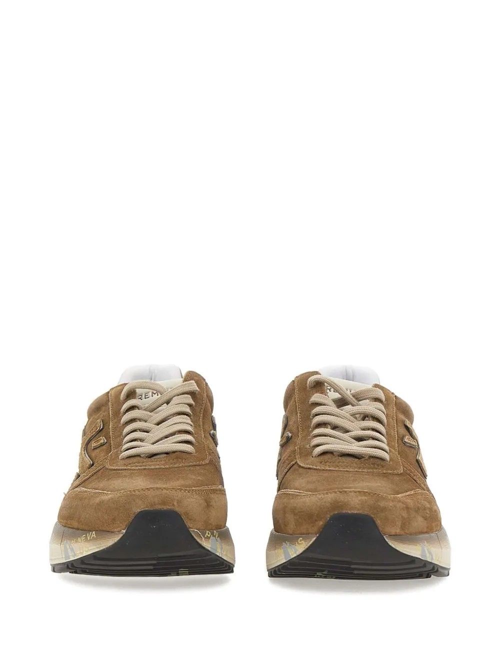Premiata Mick sneakers in a blend of technical fabrics and selected leathers.Essential lines and refined finishes define an iconic and contemporary silhouette.The side logo adds a distinctive touch, enhancing the design with bold identity and recognition.The structured sole ensures comfort and stability with every step, perfect for everyday wear.Balanced proportions and a clean aesthetic express a versatile urban style.A perfect fusion of innovation, artisanal quality, and brand identity.