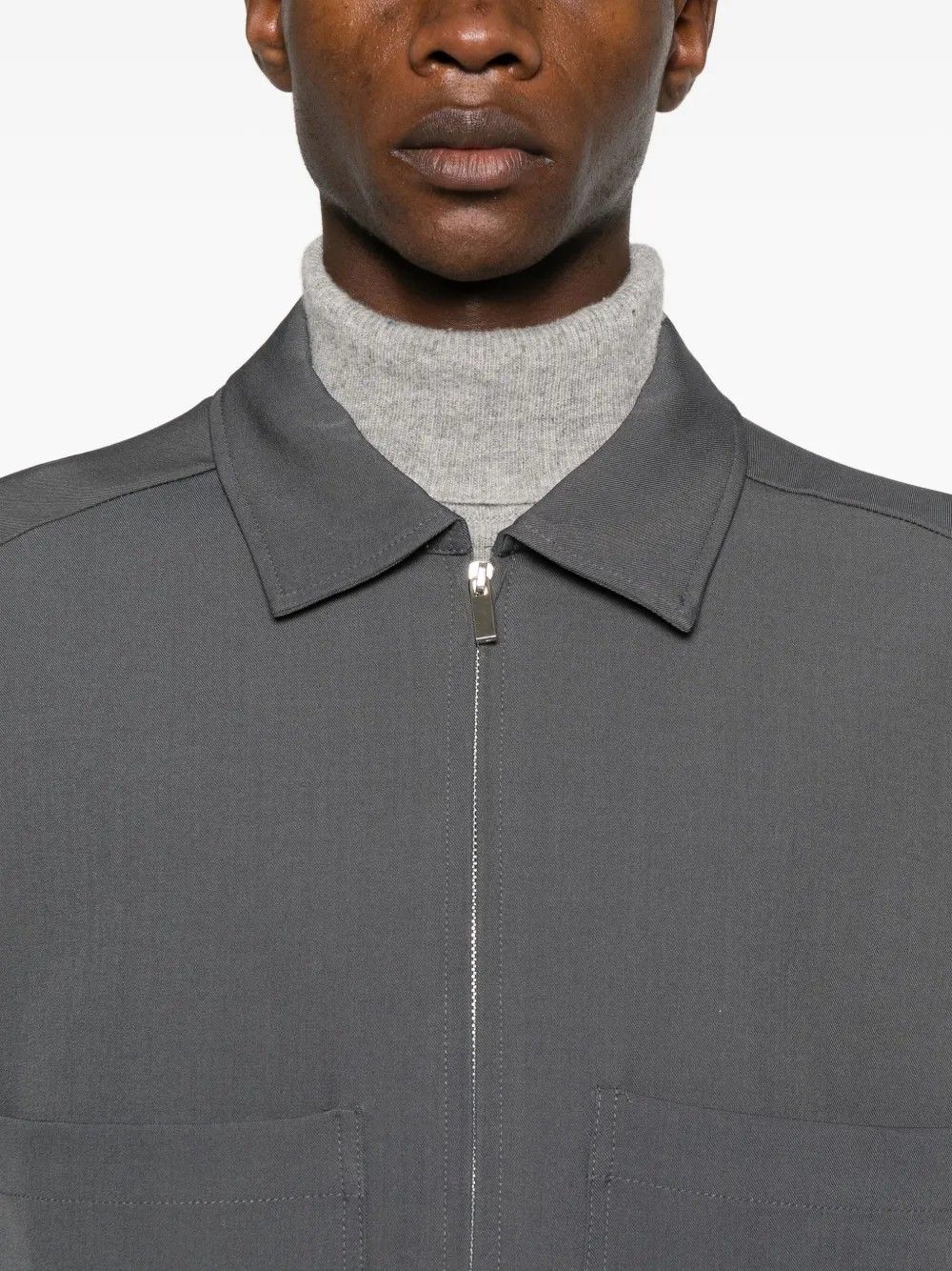 This piece combines style and functionality with a classic collar and practical zip closure. The pockets add a touch of practicality, making it ideal for everyday wear. Perfect for a metropolitan look that blends versatility with understated elegance.