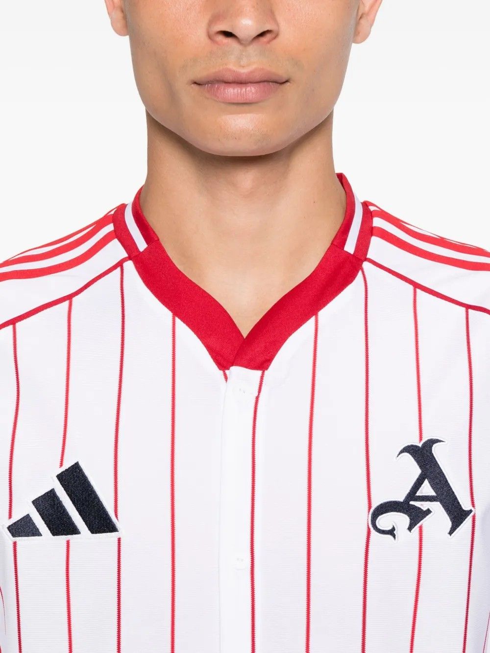 This adidas shirt blends baseball energy with American football style.Pinstripes and button closure bring a stateside sports vibe to the match jersey silhouette.The team name on the back adds an authentic fan touch.Soft fabric ensures comfort during every game or cheering moment.A perfect piece for those who want to combine passion and sporty style.