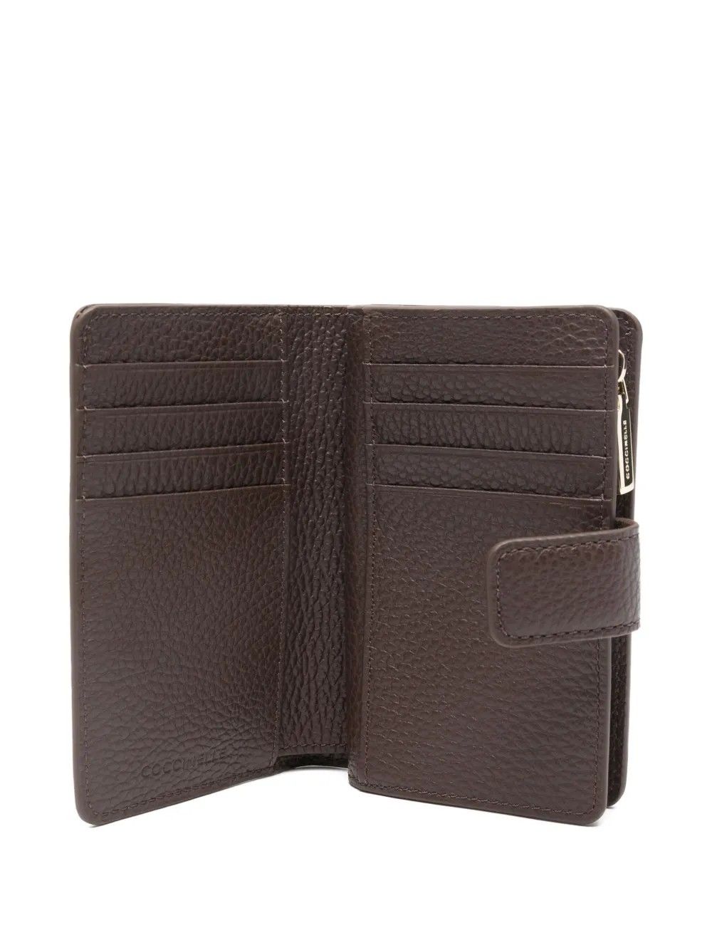 The flap wallet is crafted from grained leather, offering a refined look in a compact format. It features a press-stud fastening for easy access and internal card slots for smart organization. Measuring 13.5x8.5x2.5 cm, it’s the perfect choice for smaller bags and everyday use.
