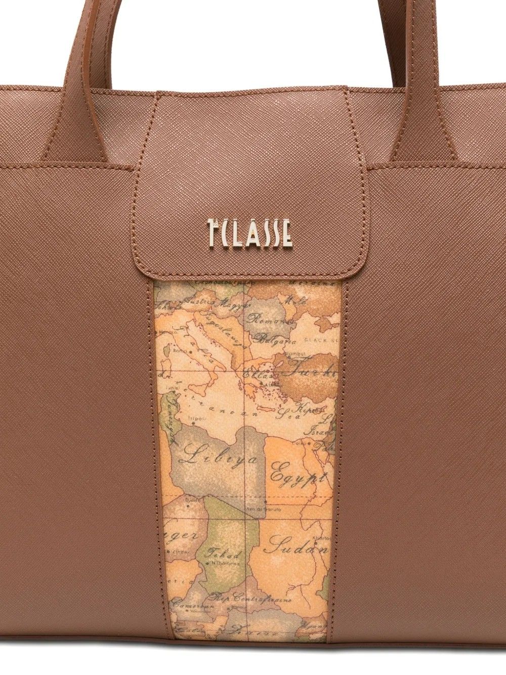 The Alviero Martini 1° Classe tote bag is crafted from 100% leather and features an elegant map print detail that defines its design.Sturdy handles provide comfort and practicality, making this accessory perfect to complete refined and everyday looks.