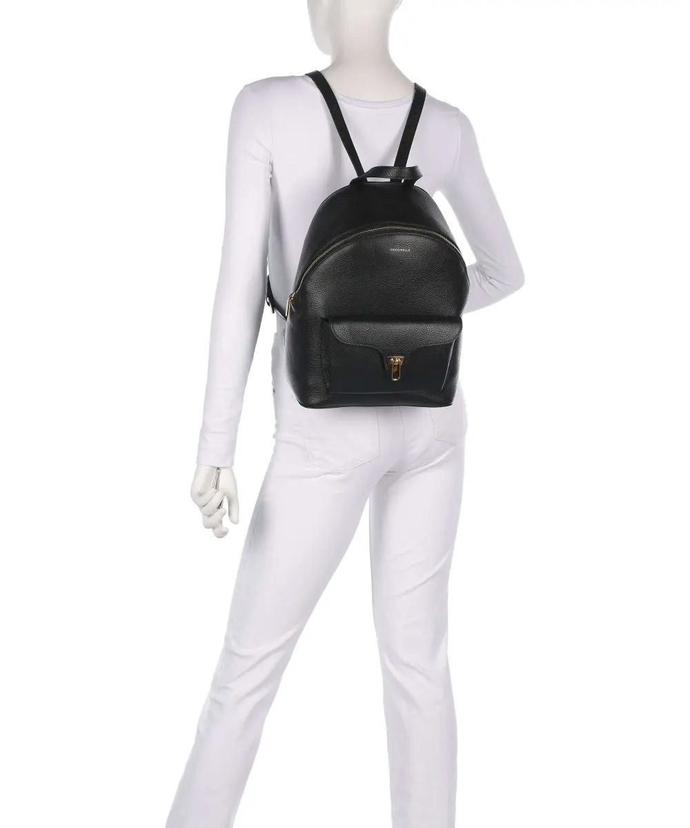 Backpack in naturally grained leather with a clean design for everyday elegance.Zip closure and internal pocket help keep essentials well organized.Adjustable shoulder straps ensure custom comfort on the go.Crafted from 100% cowhide for lasting quality and refined appeal.Size 34×25×14 cm makes it perfect for daily urban use.A signature Coccinelle piece for a practical yet sophisticated look.