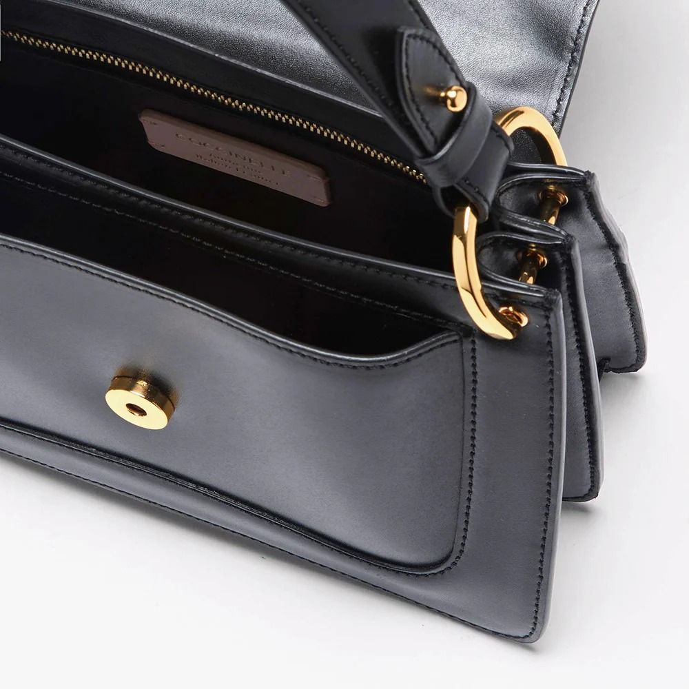 Versatile smooth calf cocker leather bag featuring the C-Me logo and magnetic closure.Comes with a removable top handle for hand carry and an adjustable, detachable leather shoulder strap.It offers three internal compartments with a zipped pocket and a front pocket.The gusseted design combined with gold galvanic details and embossed logo ensures elegance and functionality.To preserve the product, avoid harsh detergents and hand sanitizers.Measurements: 24x16x9 cm, weight 630 gr.