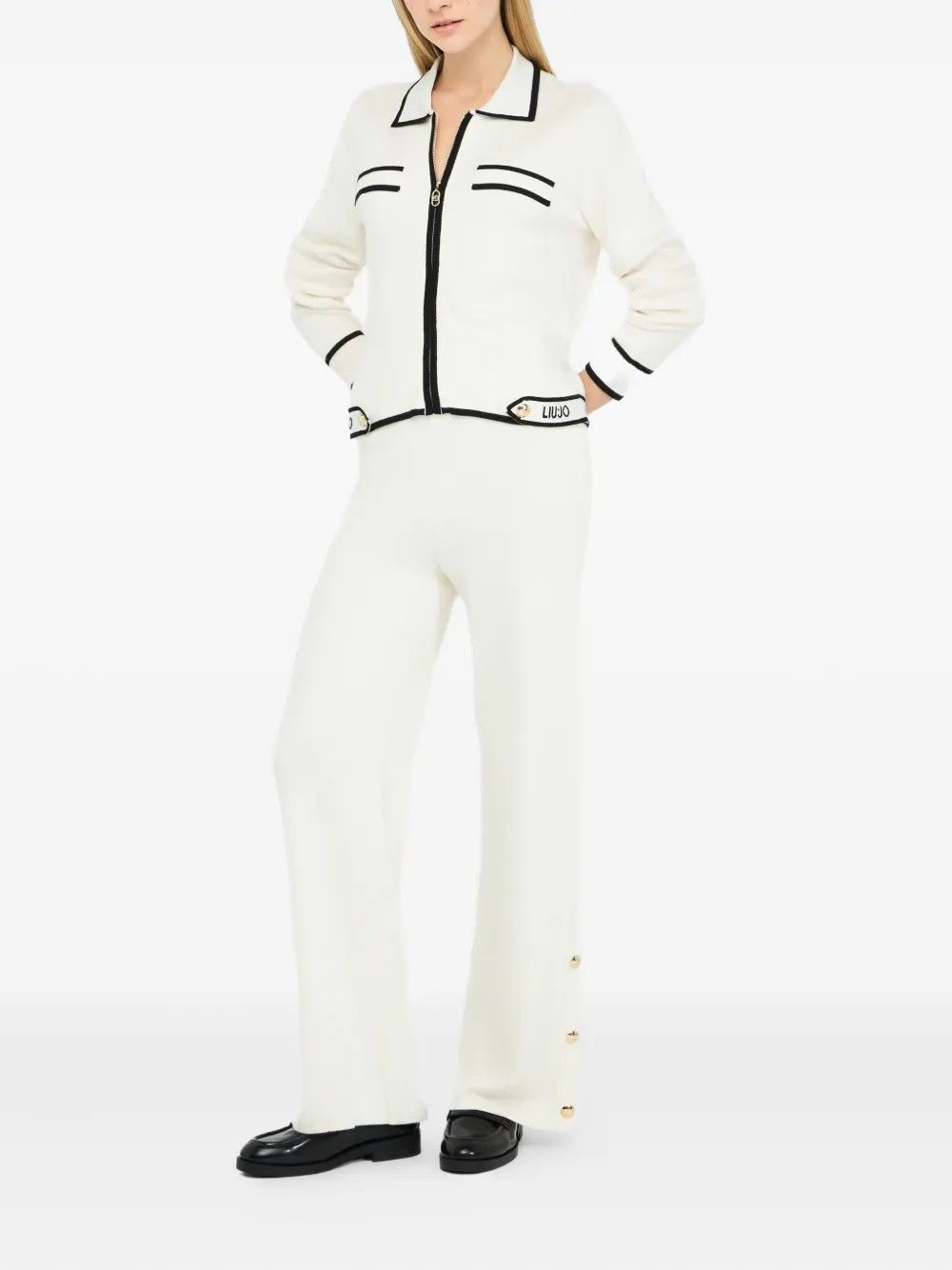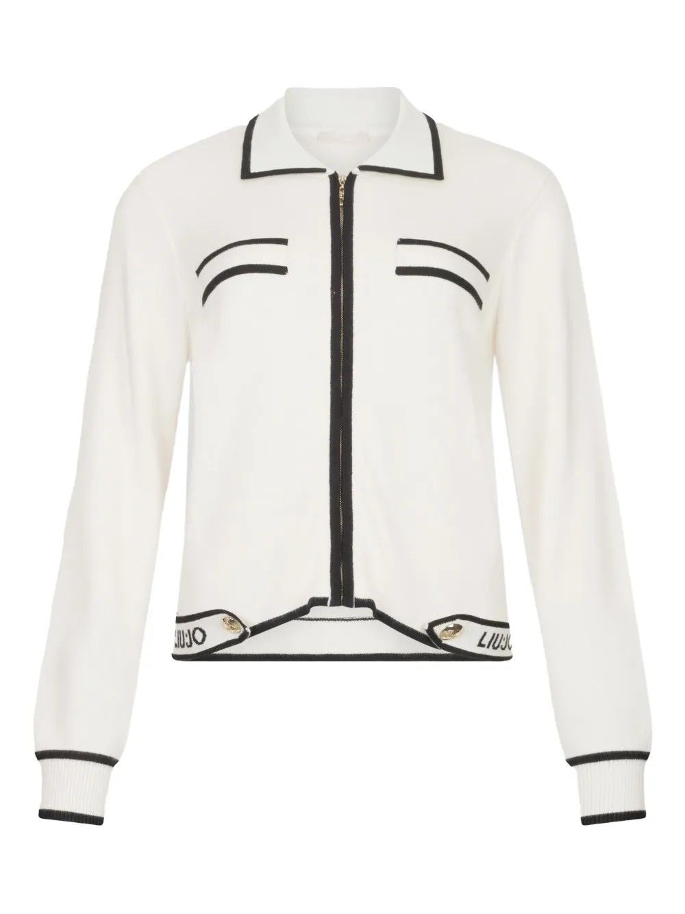 Cardigan with shirt collar and long sleeves for a refined silhouette.Made from a viscose and silk blend with contrast details and jacquard logo.Front chest pockets add a practical touch to the design.Zip closure with logo pull and bottom buttons for adjustable fit.Elegant style with refined finishes, ideal to elevate everyday looks.Versatile piece blending femininity and functionality.