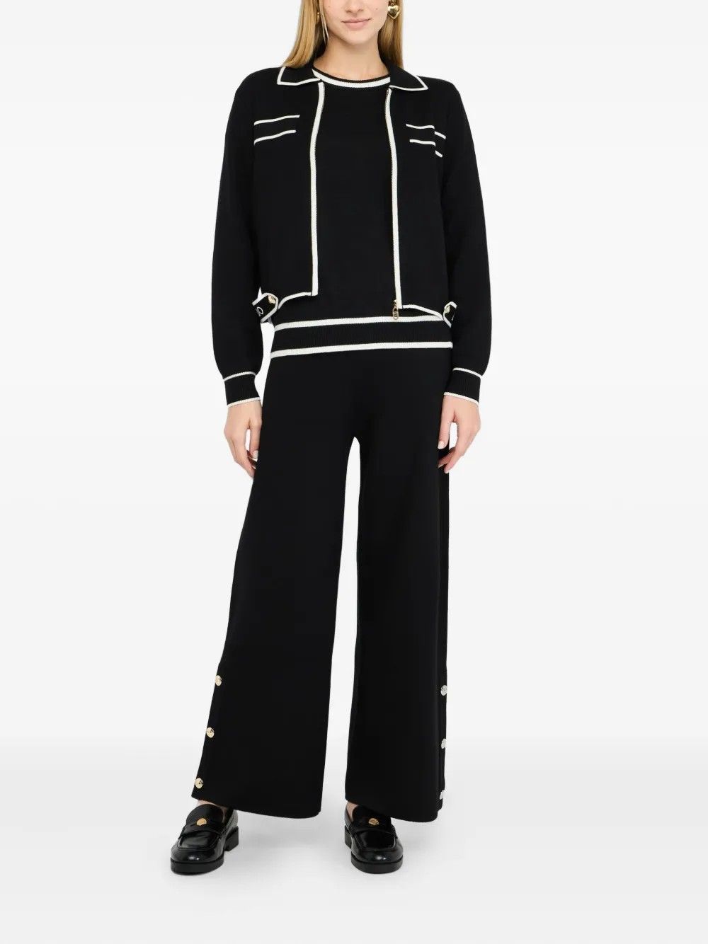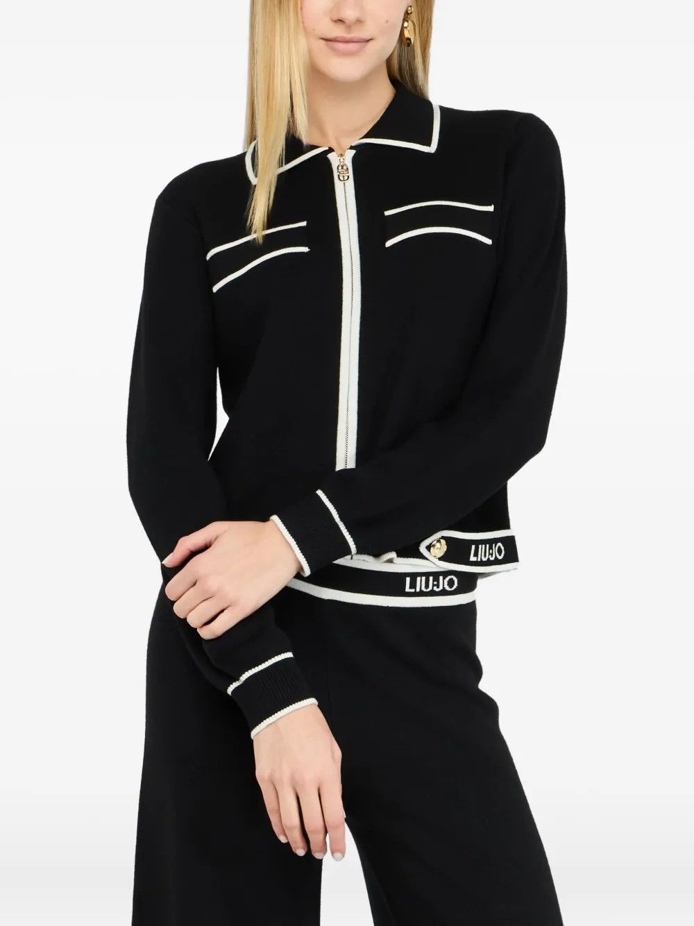 Cardigan with shirt collar and long sleeves for a refined silhouette.Made from a viscose and silk blend with contrast details and jacquard logo.Front chest pockets add a practical touch to the design.Zip closure with logo pull and bottom buttons for adjustable fit.Elegant style with refined finishes, ideal to elevate everyday looks.Versatile piece blending femininity and functionality.