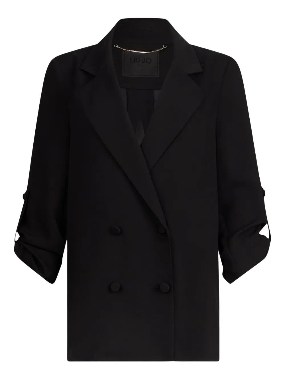 Envers satin blazer featuring classic lapels and 3/4 sleeves.Side vents and double-breasted button closure complete the design.Sophisticated elegance combined with a modern, feminine cut.A versatile piece perfect for formal and refined casual looks.Crafted with care to ensure comfort and distinctive style.By Liu Jo Bette, a symbol of quality and contemporary design.