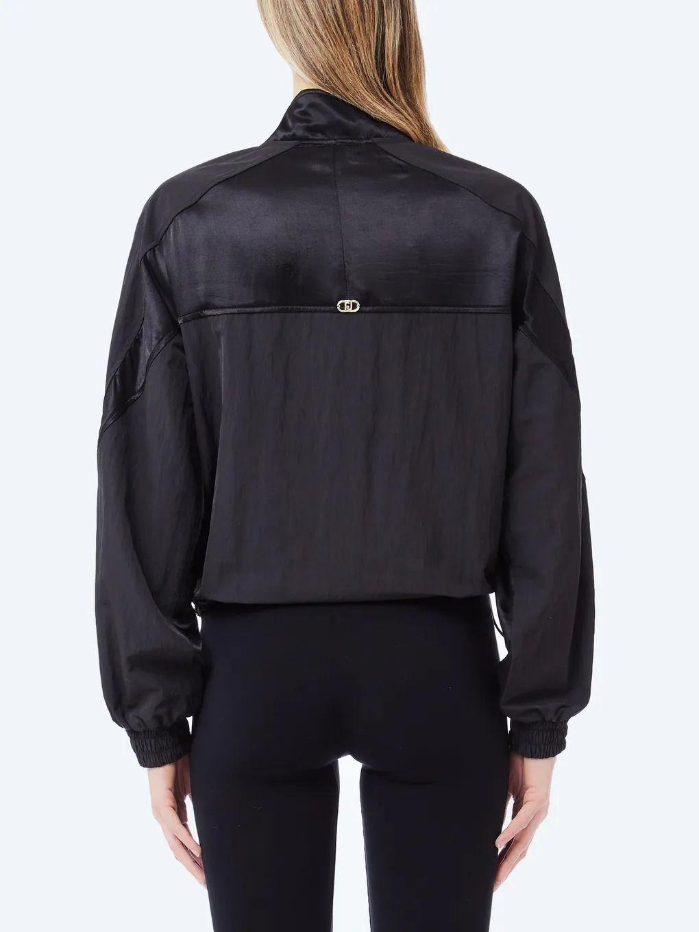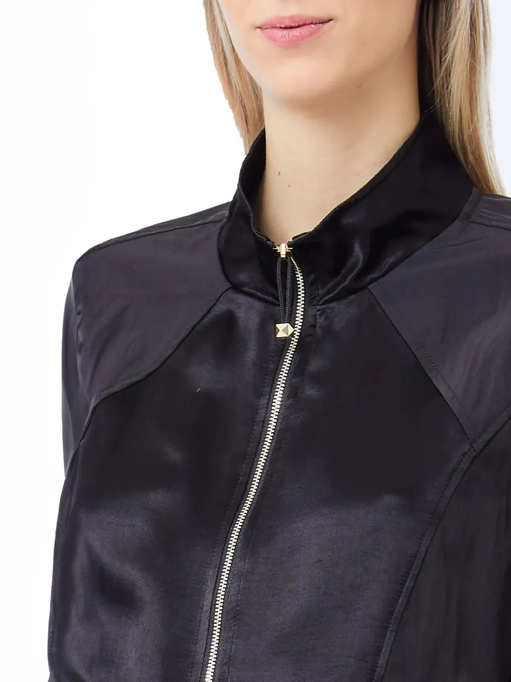 The satin and nylon bomber jacket offers a feminine and contemporary take on a classic piece. The clean design is enhanced by practical side pockets and a functional zip closure. Made from lightweight and versatile materials, it’s perfect for completing casual looks with an urban touch.
