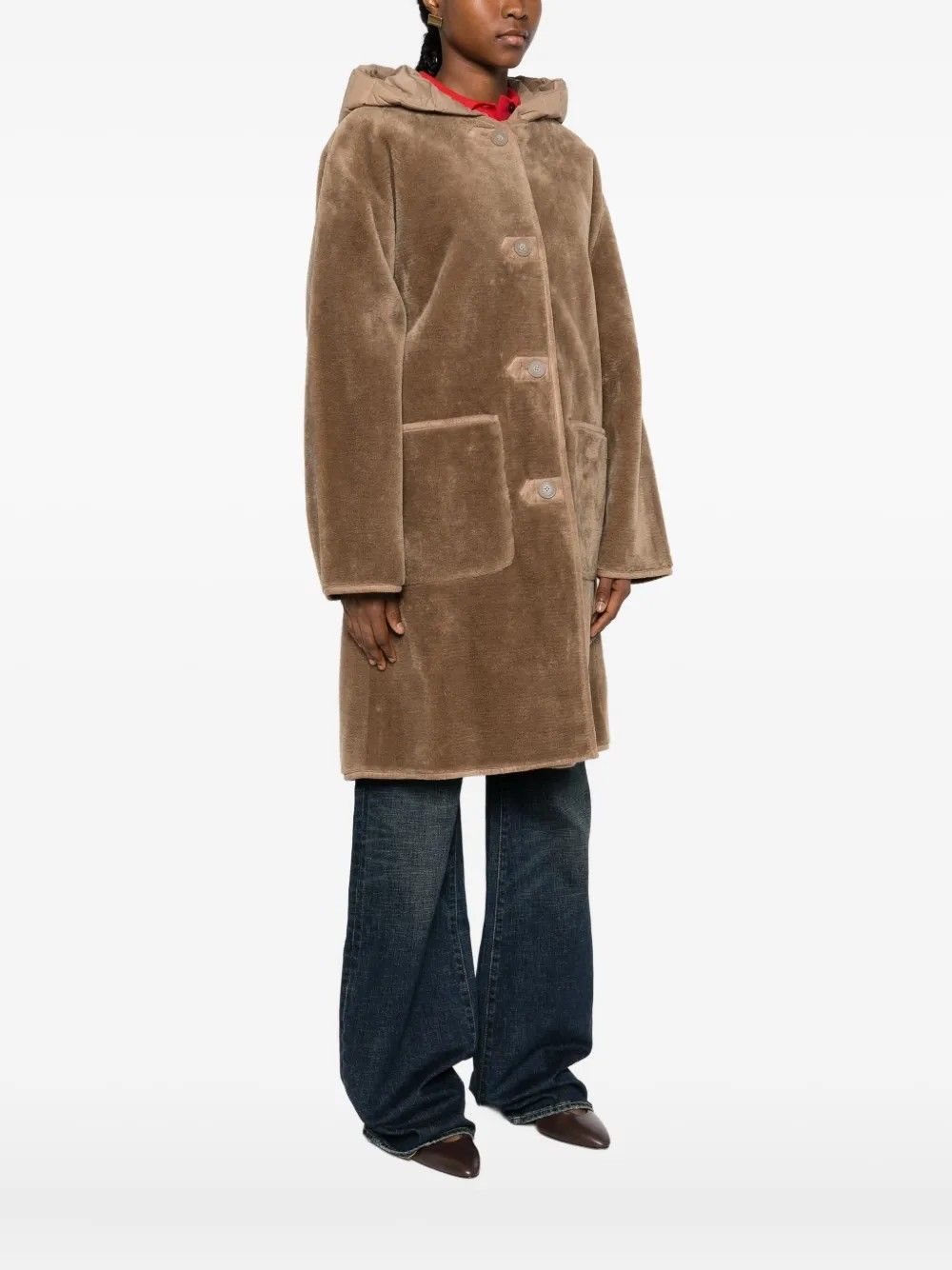 Hooded coat with a functional yet elegant design,featuring button closure and practical front pockets.Detailing with refined finishes enriches the model,long sleeves provide warmth and comfort.Made from polyester and polyamide,it offers durability and lightweight feel perfect for transitional seasons.A versatile piece for casual and sophisticated looks.