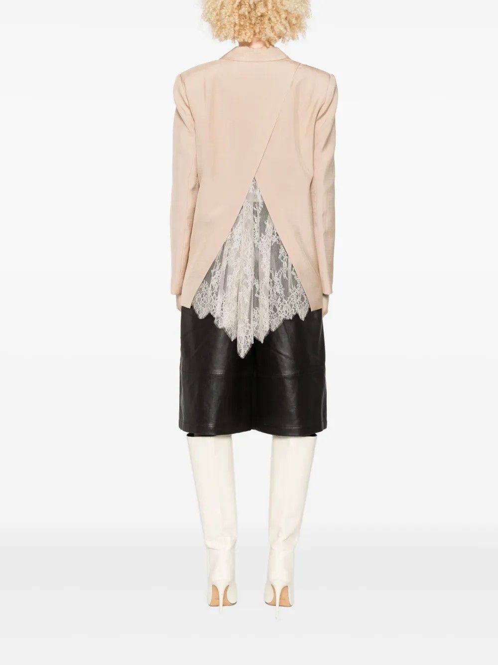Blazer in fabric with lace inserts for a refined and feminine elegance.Peaked lapel and padded shoulders define a structured silhouette.Single-breasted closure with button and semi-lined interior for extra comfort.Asymmetrical flared lines add movement and uniqueness.Regular fit designed for sophisticated and versatile looks.A Liu Jo piece that blends classic style with modern details.