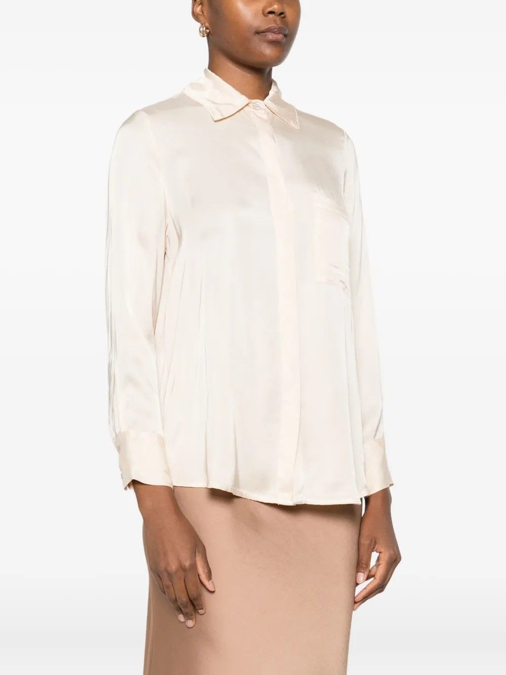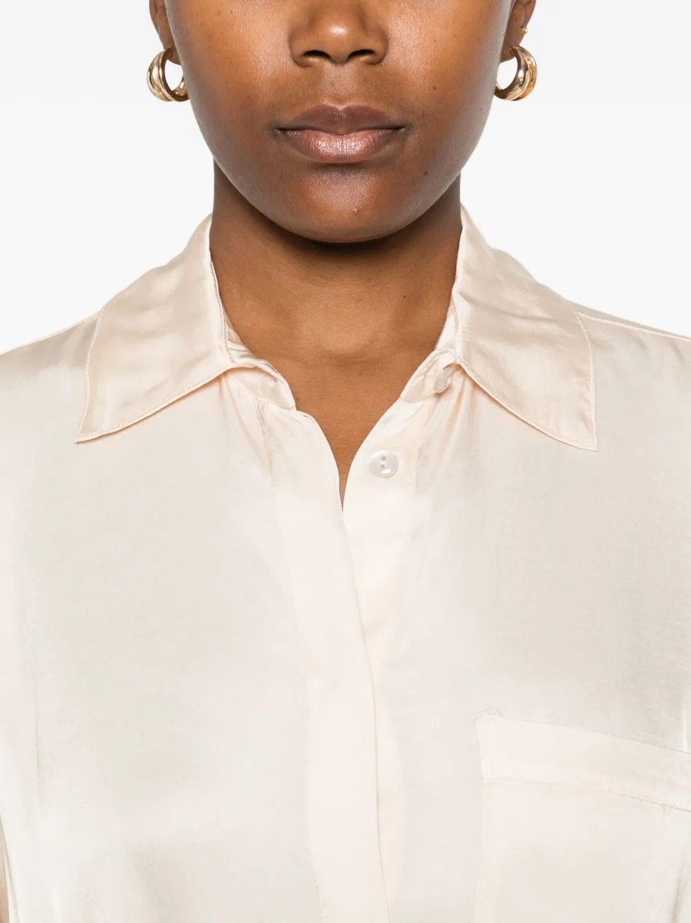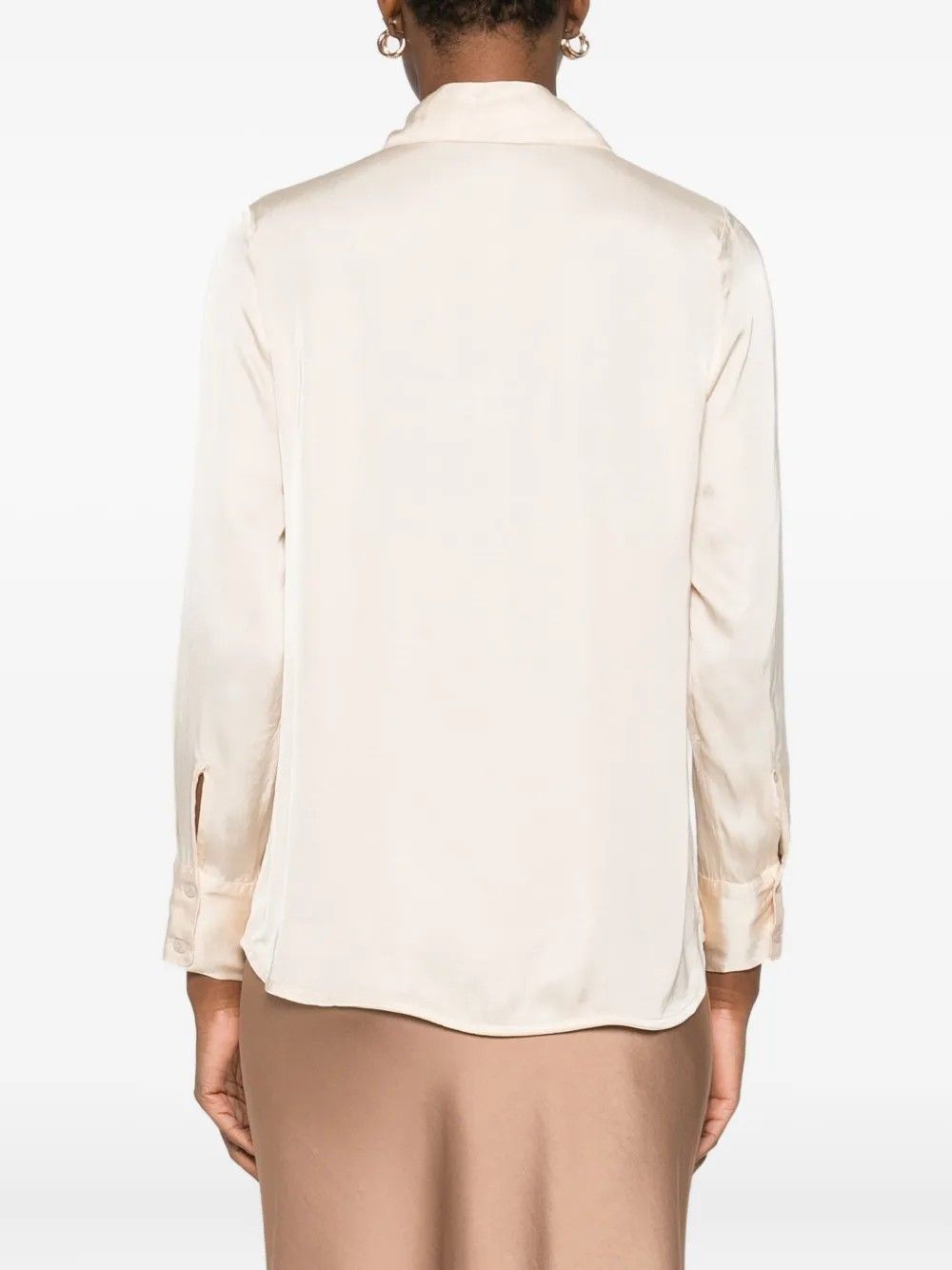 Dixie satin shirt, a timeless classic silhouette reinterpreted in an elegant and refined fabric. Its clean and understated design enhances any outfit, offering a versatile and sophisticated piece perfect for formal occasions or polished everyday looks.