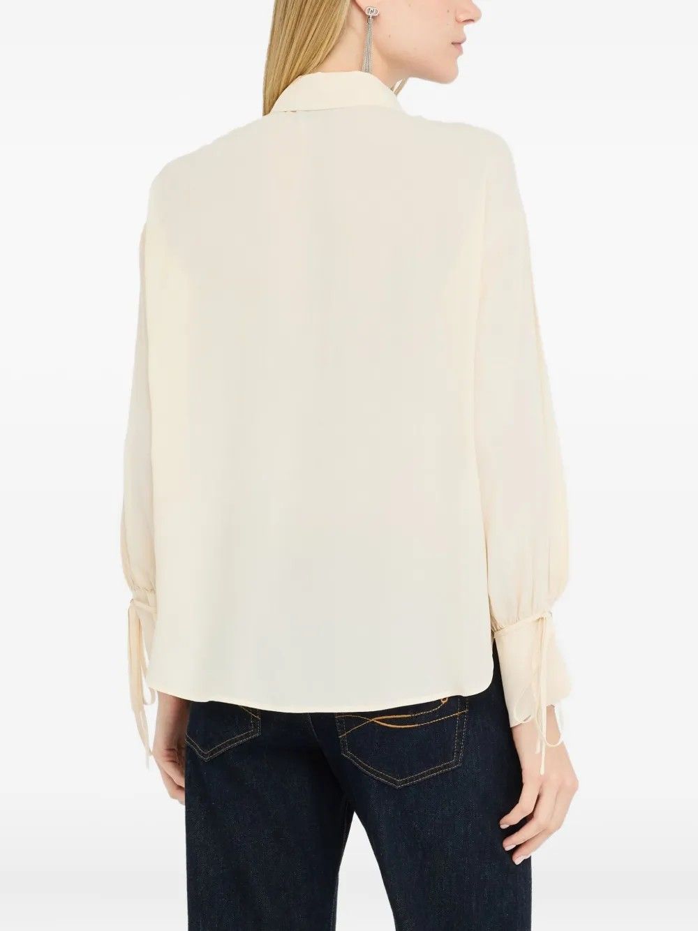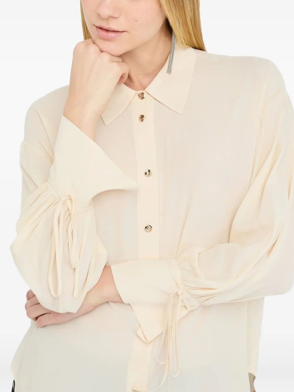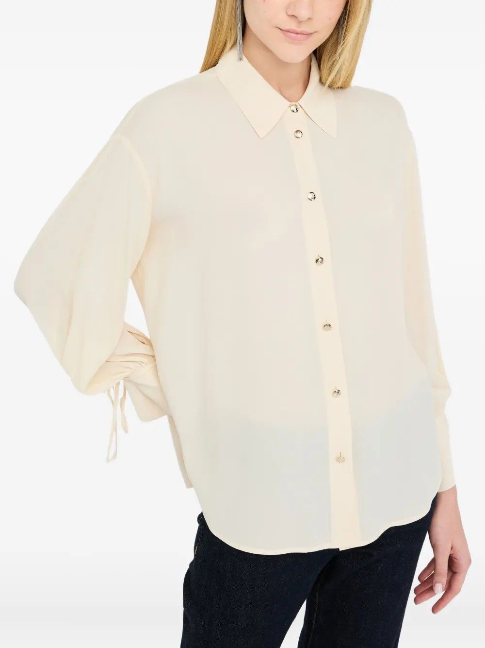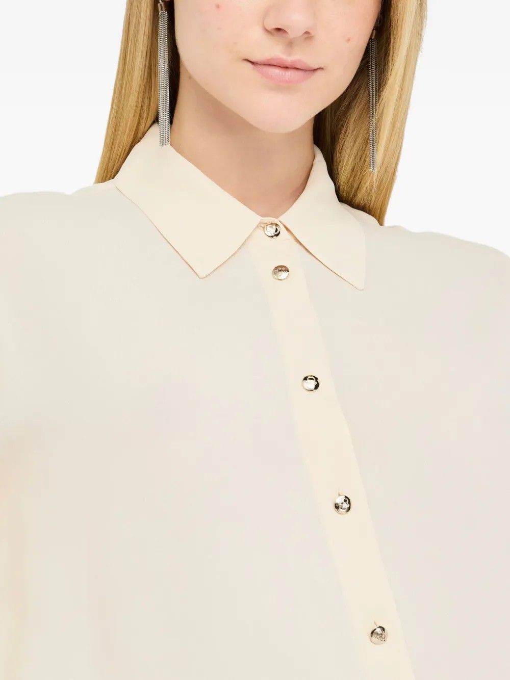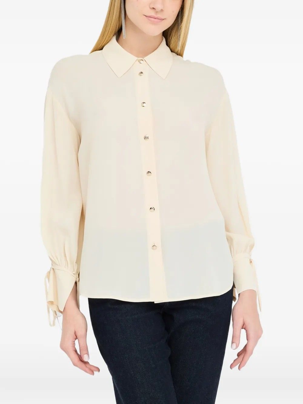 Liu Jo shirt in viscose with classic collar and button closure.Long sleeves with knotted cuffs add an original touch.Made in matte white fabric for a clean, elegant look.Refined and versatile design perfect for both formal and casual outfits.Essential accessory with a feminine and polished character.