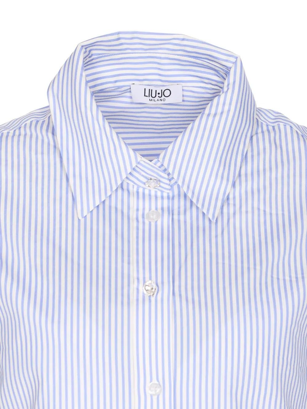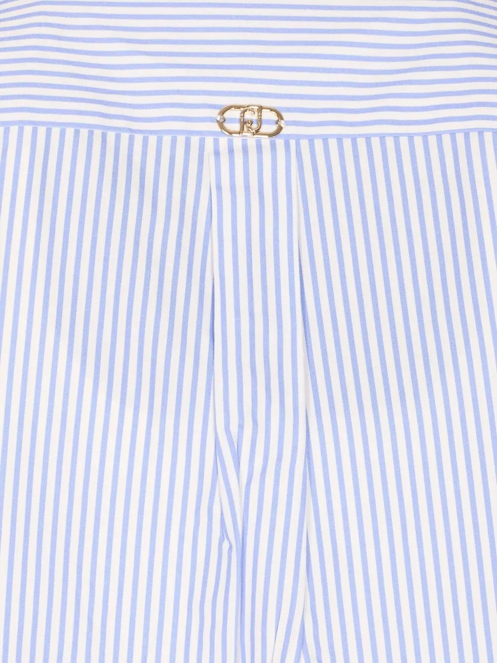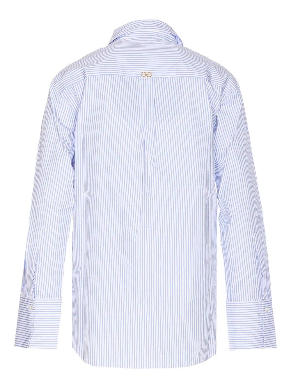 Pure cotton striped shirt with a classic collar for a timeless style.Long sleeves and front button fastening offer a clean, structured fit.Crew neck and regular cut ideal for the Fall Winter 2025 season.Featuring a back logo detail that adds a signature touch.An essential and versatile piece for any women's wardrobe.