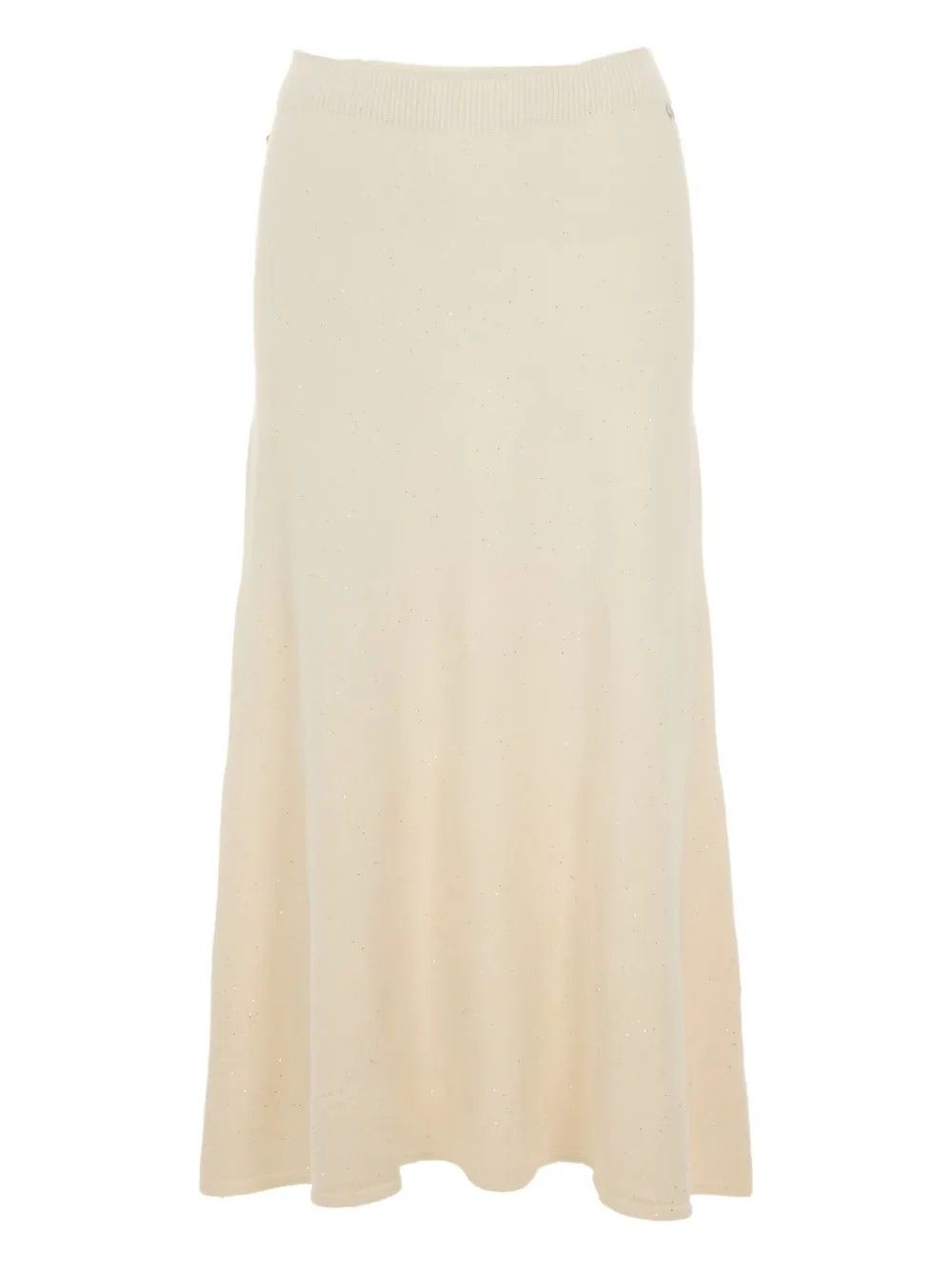 Knit skirt made from a viscose blend with micro-sequins for a refined, sparkling touch.Elastic waistband ensures a comfortable and defined fit.Regular fit perfect for feminine, versatile styling.Easy to pair with tops or blouses for day-to-night looks.Front logo adds an iconic Liu Jo detail.A piece designed for everyday elegance with a hint of shine.