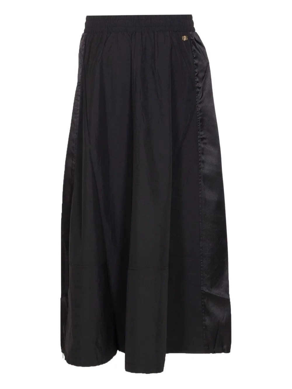 Maxi skirt with modern design featuring a long silhouette and delicate pleats.Elastic waistband with drawstring offers adjustable, comfortable fit.Drawstring with stoppers at the hem allows for personalized shaping.Made from lightweight fabric ensuring comfort and versatility.Suitable for various casual and sporty looks.Contemporary style combining practicality and femininity.