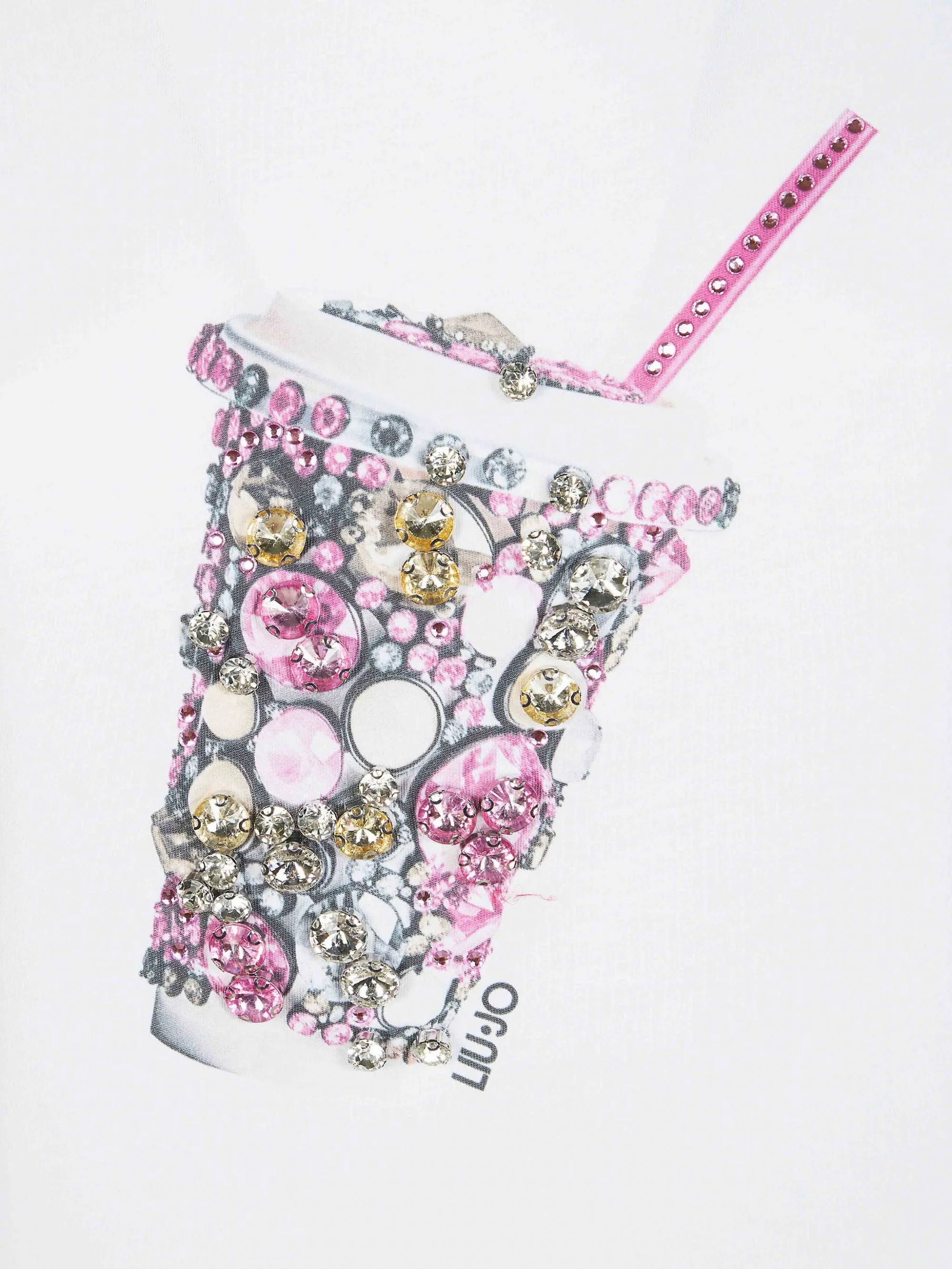 Discover the new T-shirt by LIU JO, an iconic piece for those who love a unique and original style. This model features a captivating graphic with precious details that evoke modernity and vibrancy. Perfect to pair with both jeans and skirts, it will accompany you on your outings with a touch of glamour.