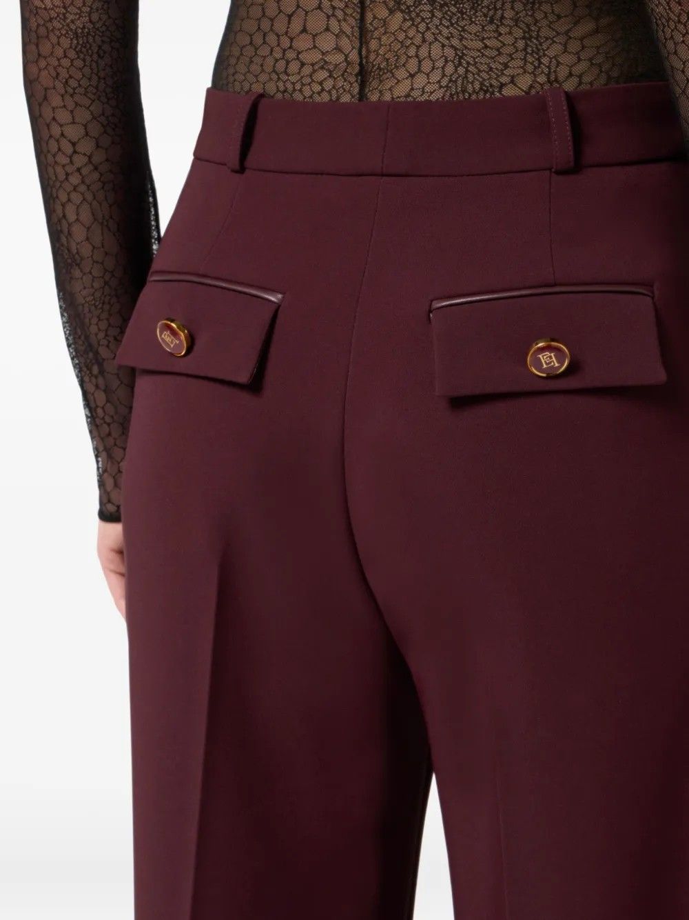 Lightweight crêpe trousers with an oversized fit designed for effortless elegance.Deep pleats and center crease define soft yet structured volumes.French pockets and back flaps add a tailored touch.Faux leather-effect trims introduce a modern contrast.Enamelled logo buttons complete the refined design.Part of the Essential collection for versatile and polished looks.