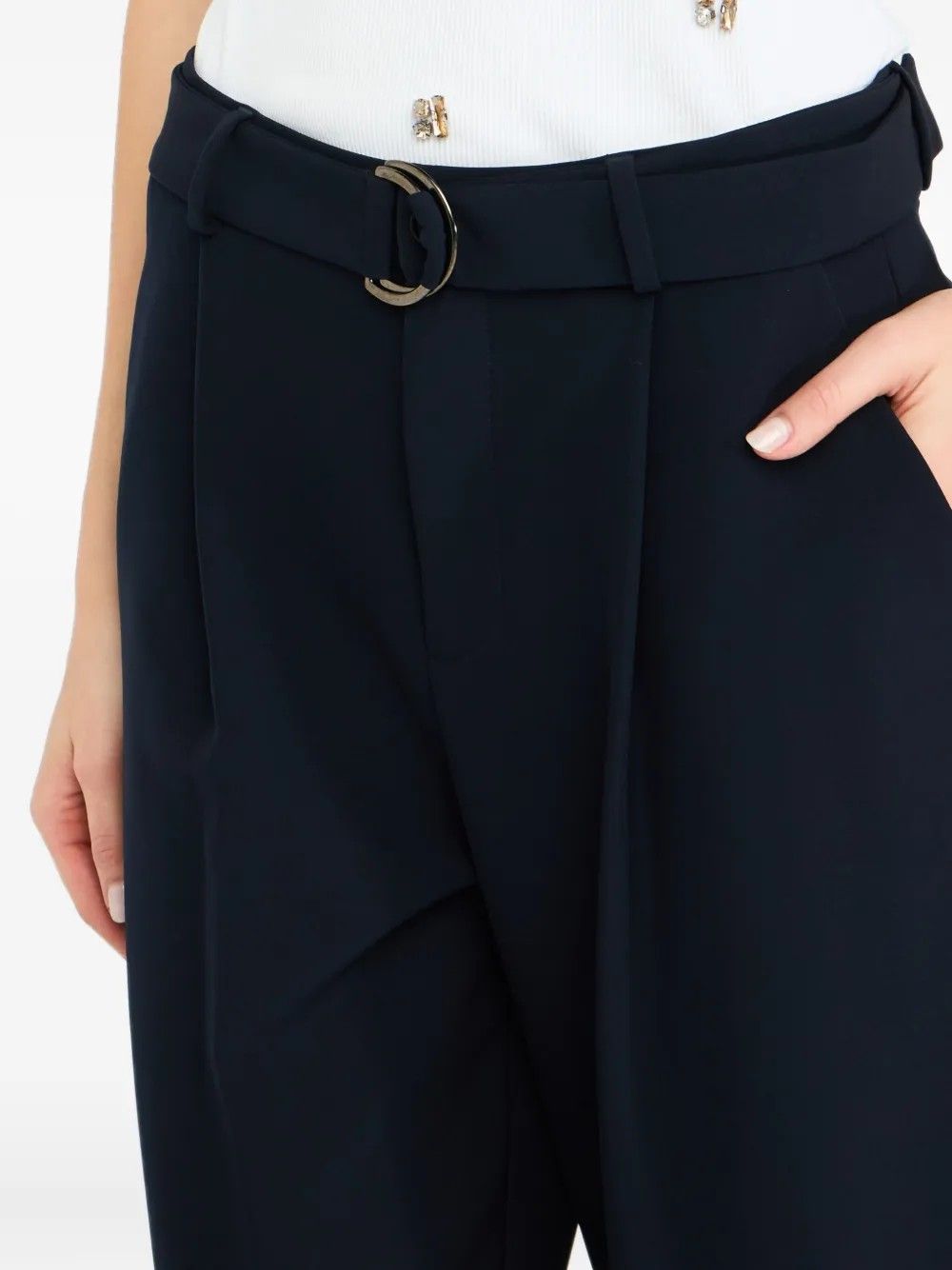 High-waisted trousers with front pleats for a flattering, feminine silhouette.Adjustable buckle belt enhances the waistline.Practical side pockets and back welt pockets for a polished finish.Made from stretch fabric for maximum comfort throughout the day.Part of the "Liu Jo Better" line for a more responsible choice.A refined, versatile piece perfect from day to night.