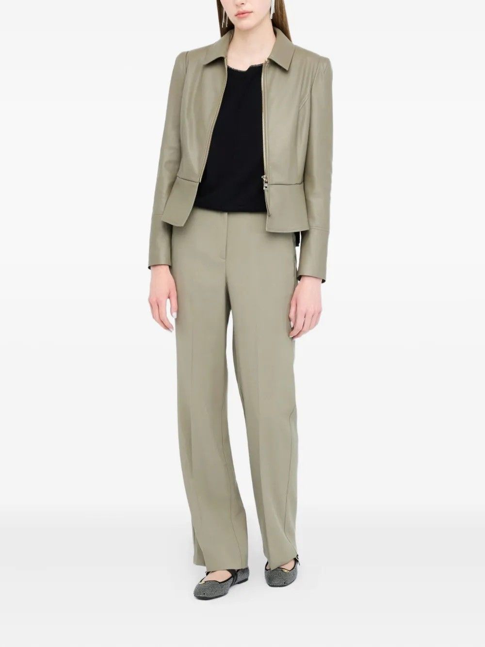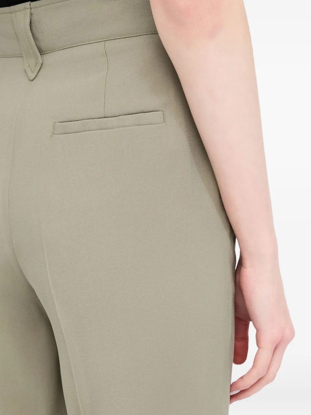 The pleated trousers feature side pockets and a welt pocket, completed with a buttoned fly and zip closure. Made from a blend of viscose and polyester, they offer a comfortable and refined fit. The acetate and polyester lining ensures a soft feel against the skin, making them perfect for an elegant and polished look.