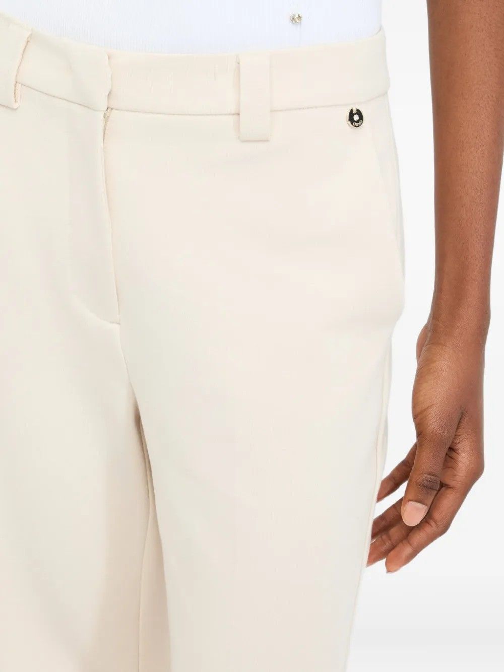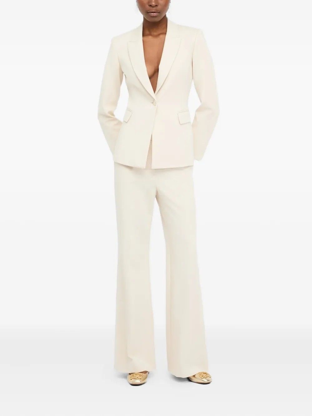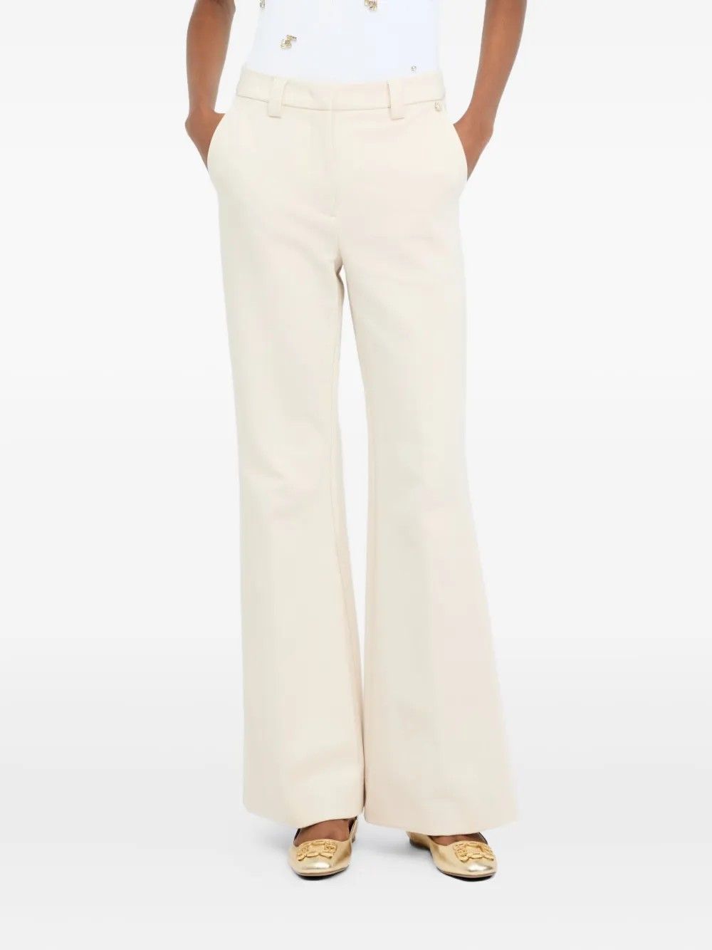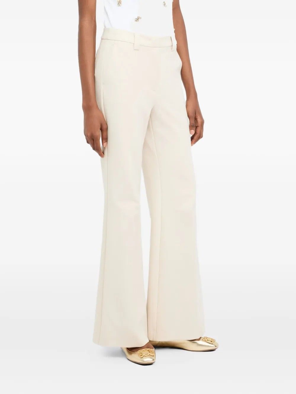 The flared trousers feature elegant pleating and both front and welt pockets for a functional design. The hidden zip closure ensures a clean, refined silhouette. Made from a blend of viscose, nylon, and elastane, they provide comfort and an optimal fit, complemented by a polyester lining for added softness.