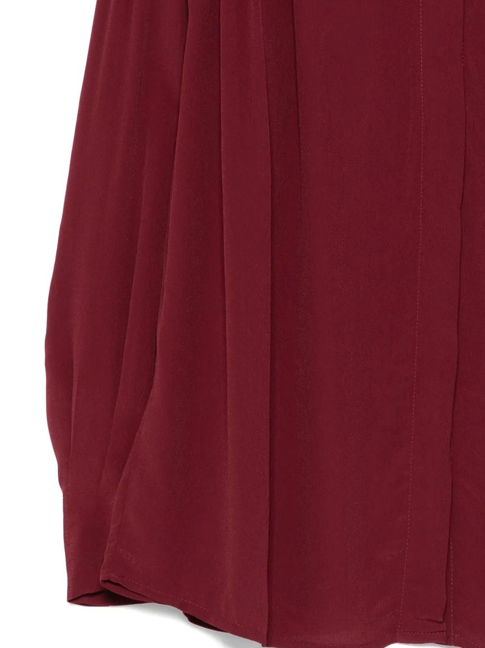 La camicia a maniche lunghe presenta un design minimalista con colletto alla coreana che dona un tocco contemporaneo.Il capo è caratterizzato da una chiusura frontale a bottoni e orli con abbottonatura per un dettaglio raffinato.Realizzata in viscosa 100%, offre una texture leggera e morbida che assicura comfort e vestibilità ideale per look casual o formali.La linea pulita e i dettagli essenziali esaltano uno stile versatile e moderno, perfetto per ogni occasione.