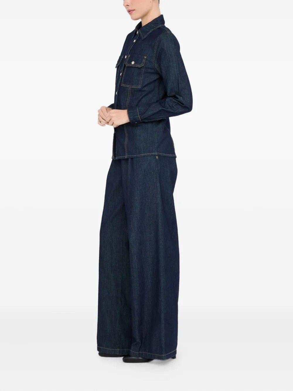 Camicia in denim di cotone con colletto classico e taschini con patta e bottone sul petto.Le maniche lunghe con polsi abbottonati aggiungono un tocco strutturato.La chiusura frontale con bottoni completa il design essenziale e versatile.Un capo intramontabile perfetto per look casual e layering di stagione.