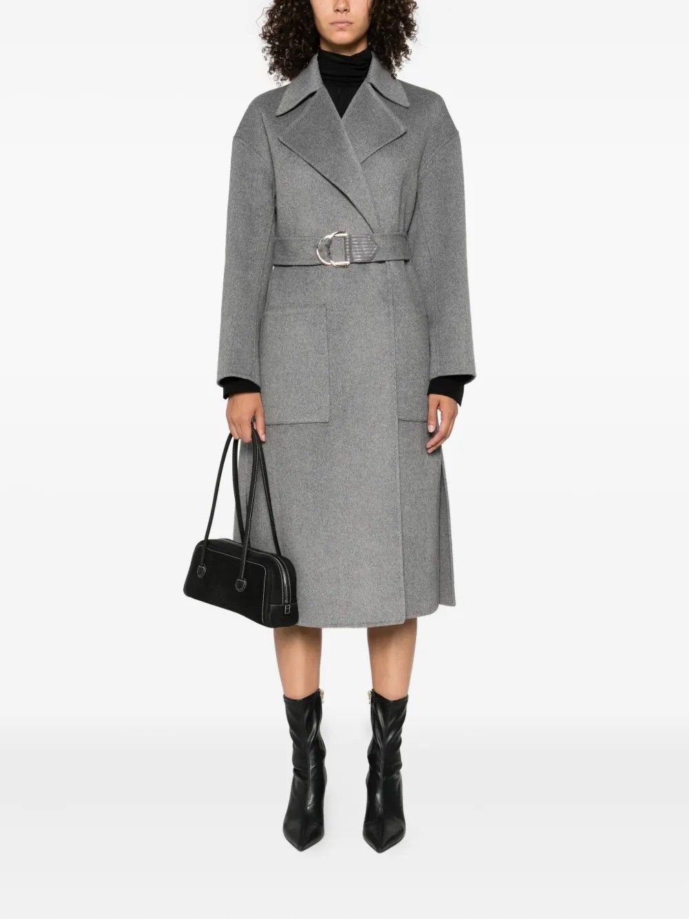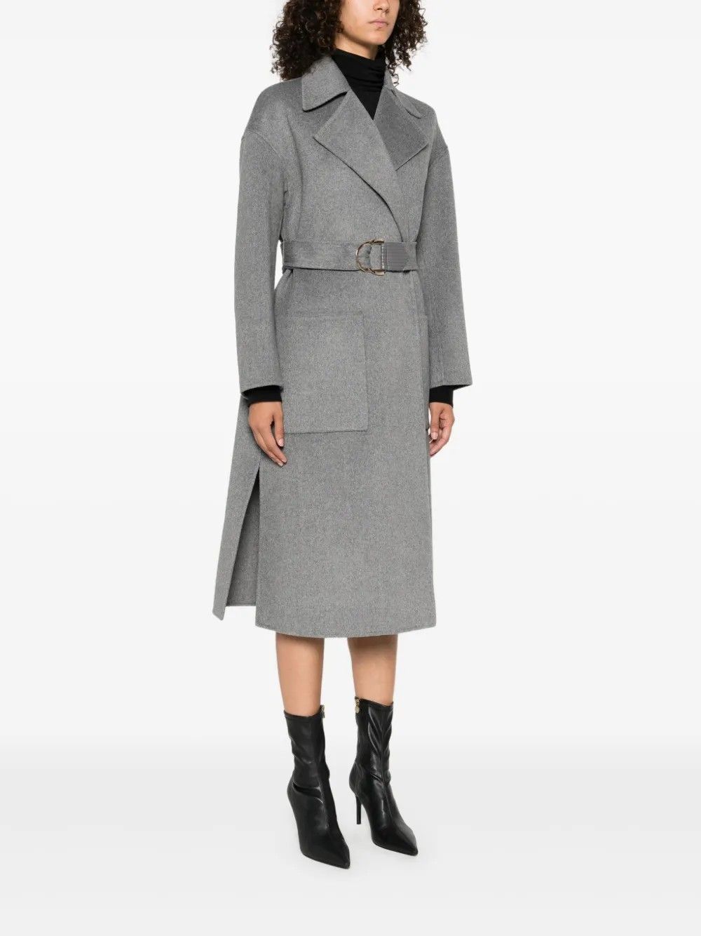 Cappotto in panno di misto lana dal design elegante e classico.Collo a revers e chiusura doppiopetto per uno stile raffinato.Tasche laterali funzionali e spacchi che garantiscono comfort e libertà di movimento.Cintura sur ton con fibbia d-ring abbinata per valorizzare la silhouette.Realizzato con materiali di qualità per calore e durata ideali.Perfetto per completare look sofisticati nelle stagioni fredde.