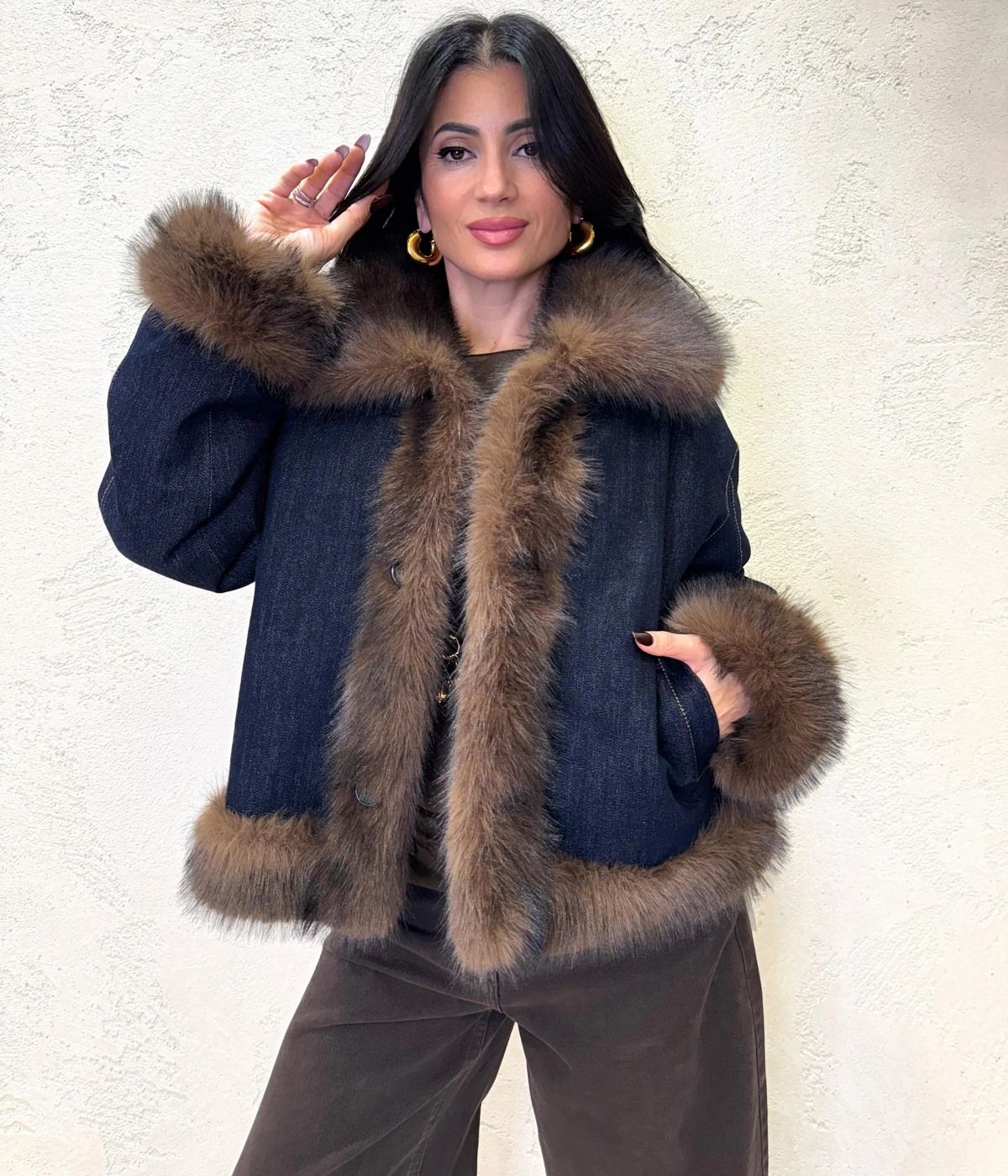 VICOLO - Giacca in Denim e Eco-pelliccia