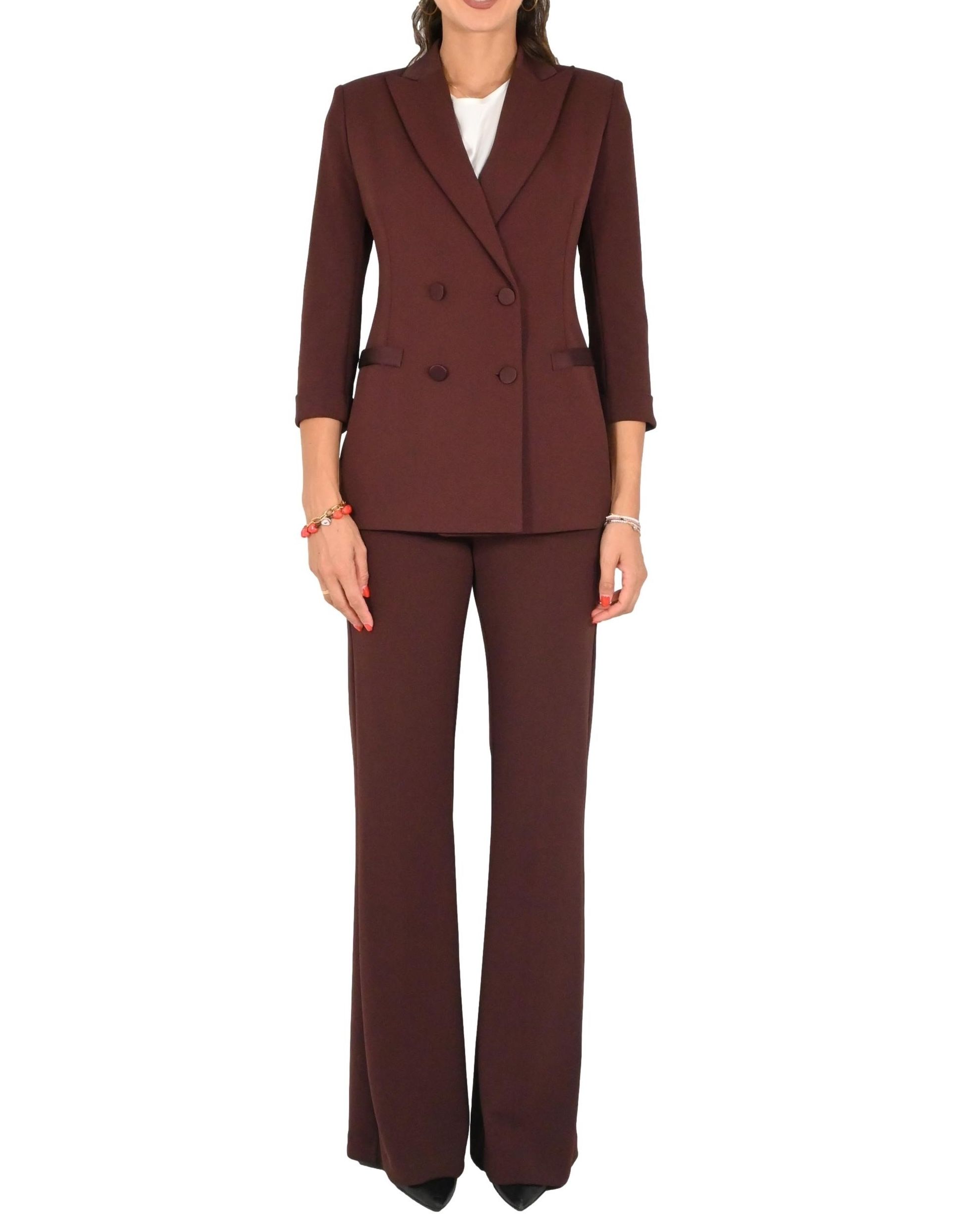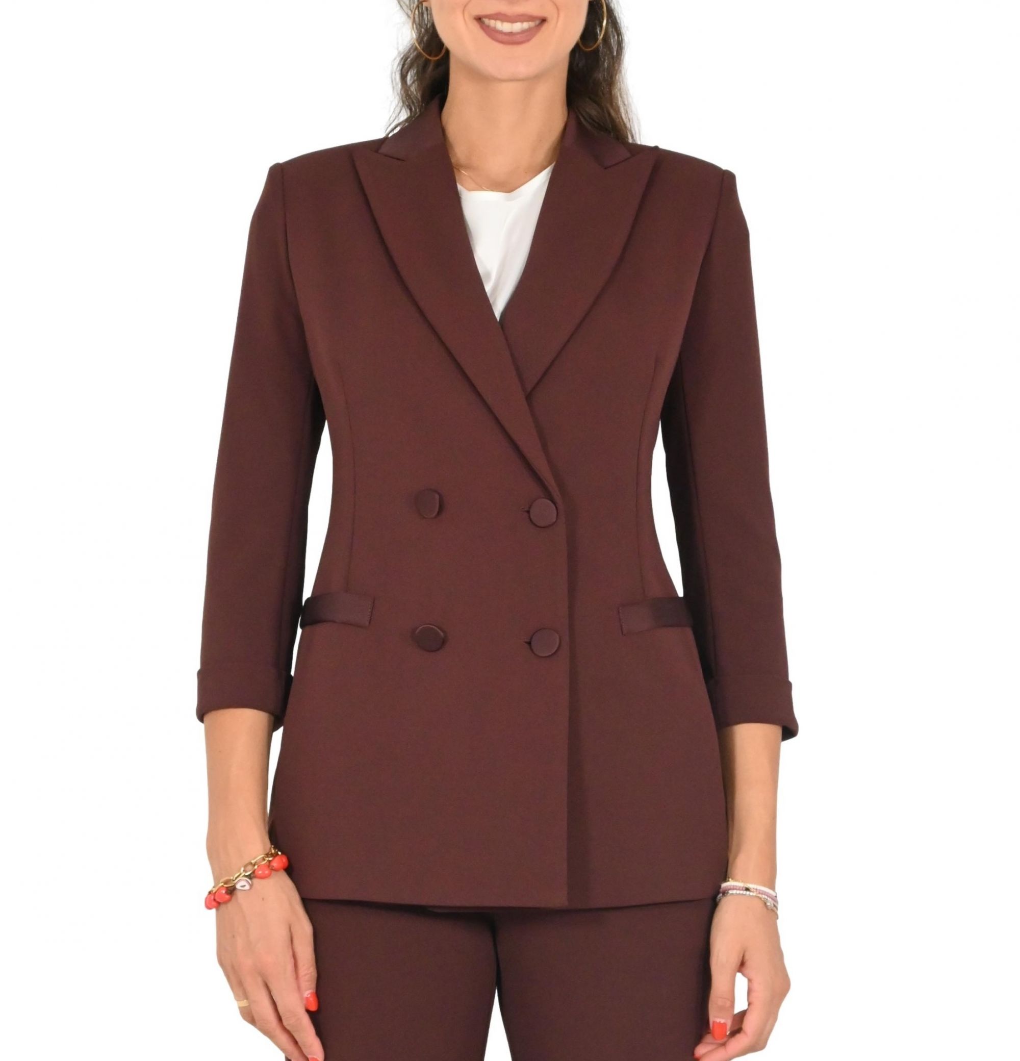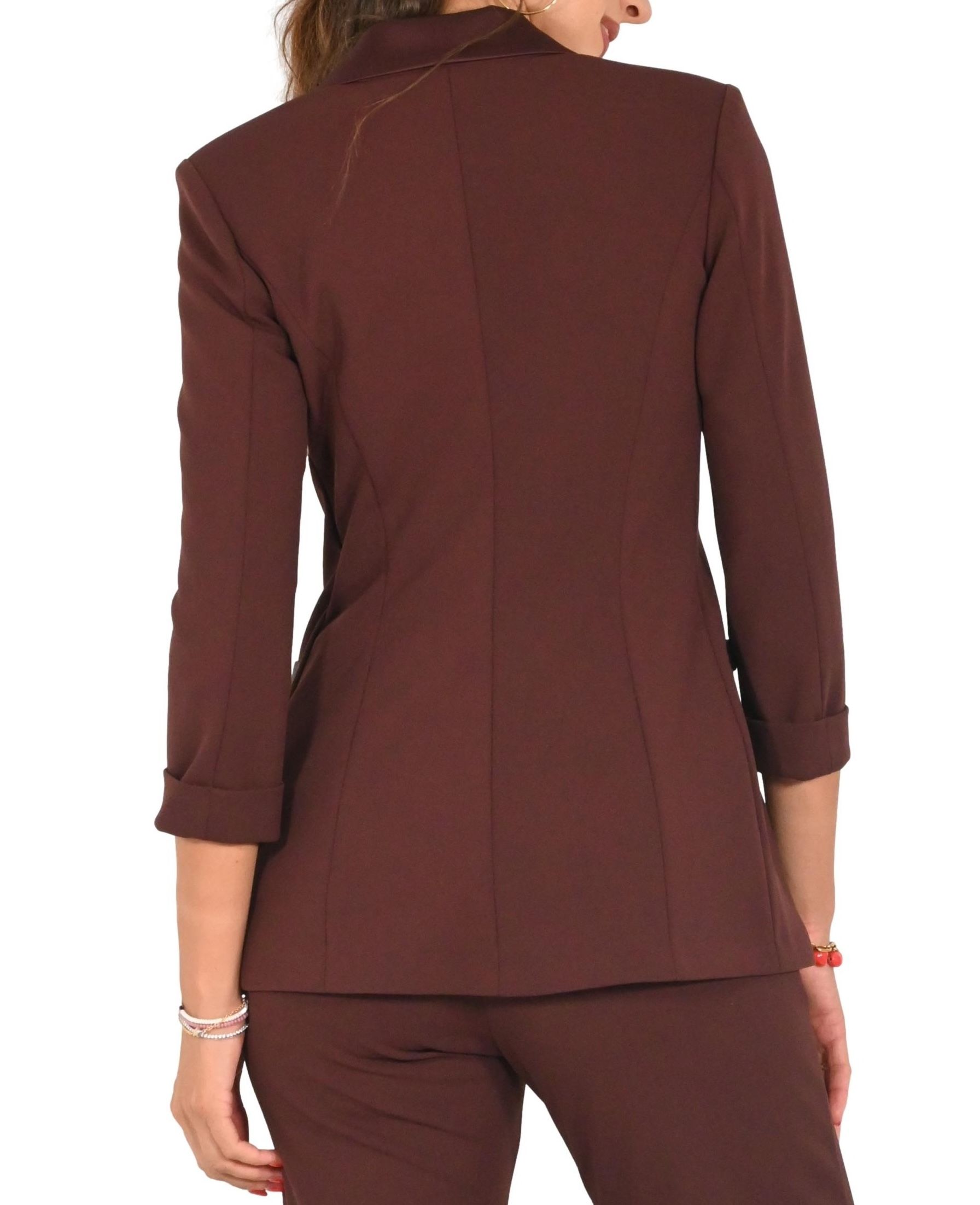 Blazer Imperial doppiopetto con maniche a 3/4 e taglio sartoriale.Linea pulita ed essenziale che esalta uno stile sofisticato e contemporaneo.Chiusura frontale con bottoni e costruzione strutturata che valorizza la figura.Perfetto per occasioni formali o per elevare il look quotidiano con un tocco di classe.Realizzato con cura nei dettagli per un'eleganza senza tempo.Must-have versatile dal carattere deciso e raffinato.