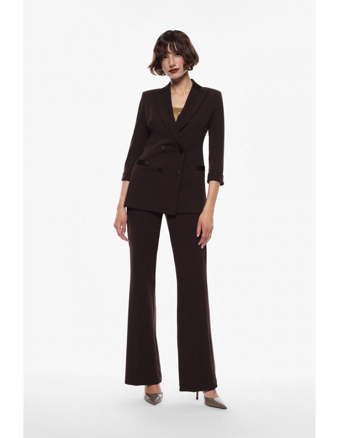 Blazer Imperial doppiopetto con maniche a 3/4 e taglio sartoriale.Linea pulita ed essenziale che esalta uno stile sofisticato e contemporaneo.Chiusura frontale con bottoni e costruzione strutturata che valorizza la figura.Perfetto per occasioni formali o per elevare il look quotidiano con un tocco di classe.Realizzato con cura nei dettagli per un'eleganza senza tempo.Must-have versatile dal carattere deciso e raffinato.