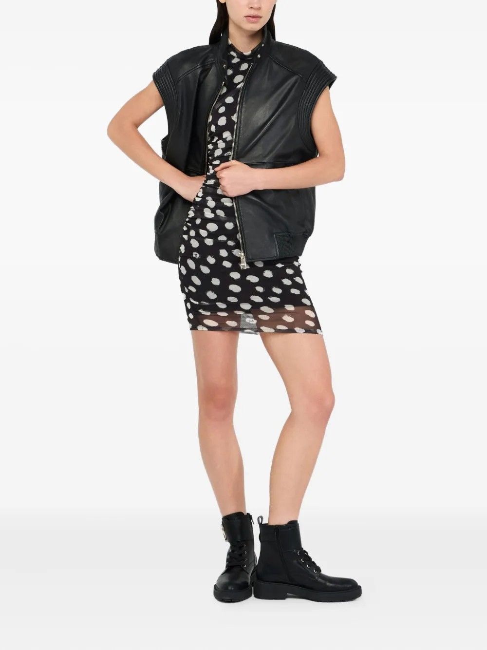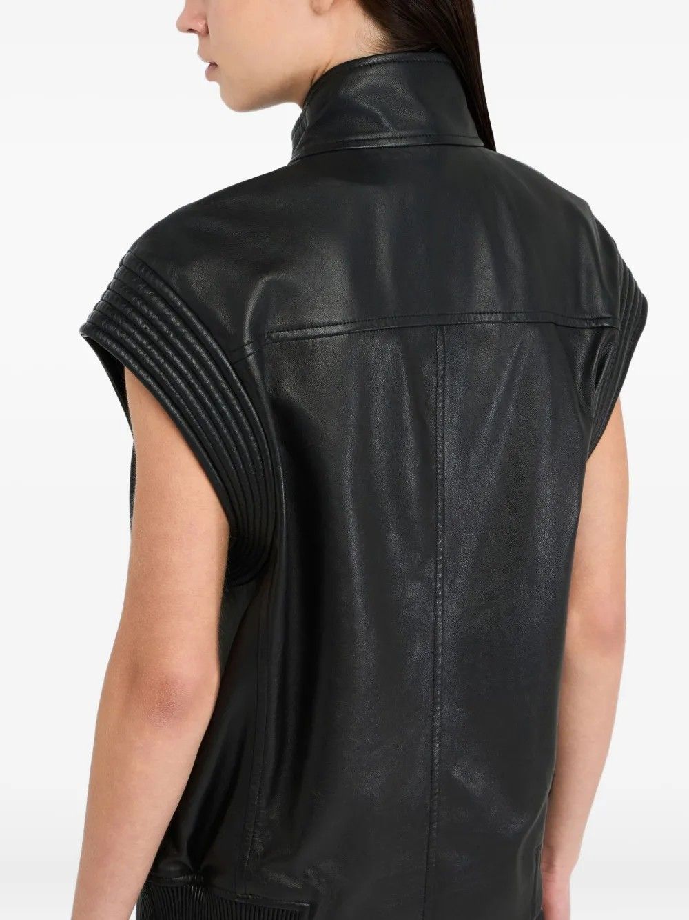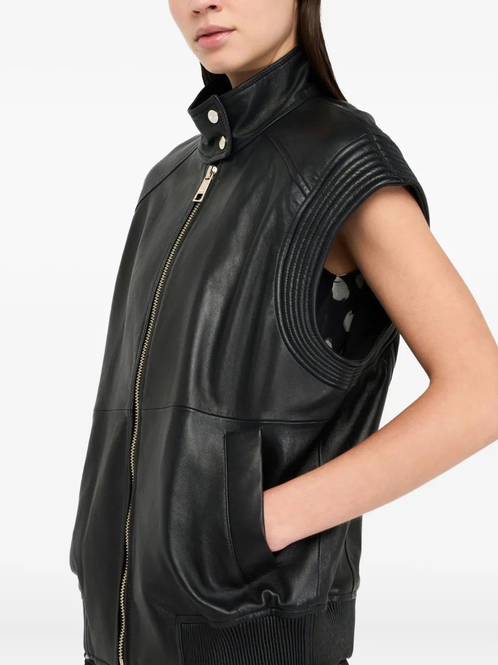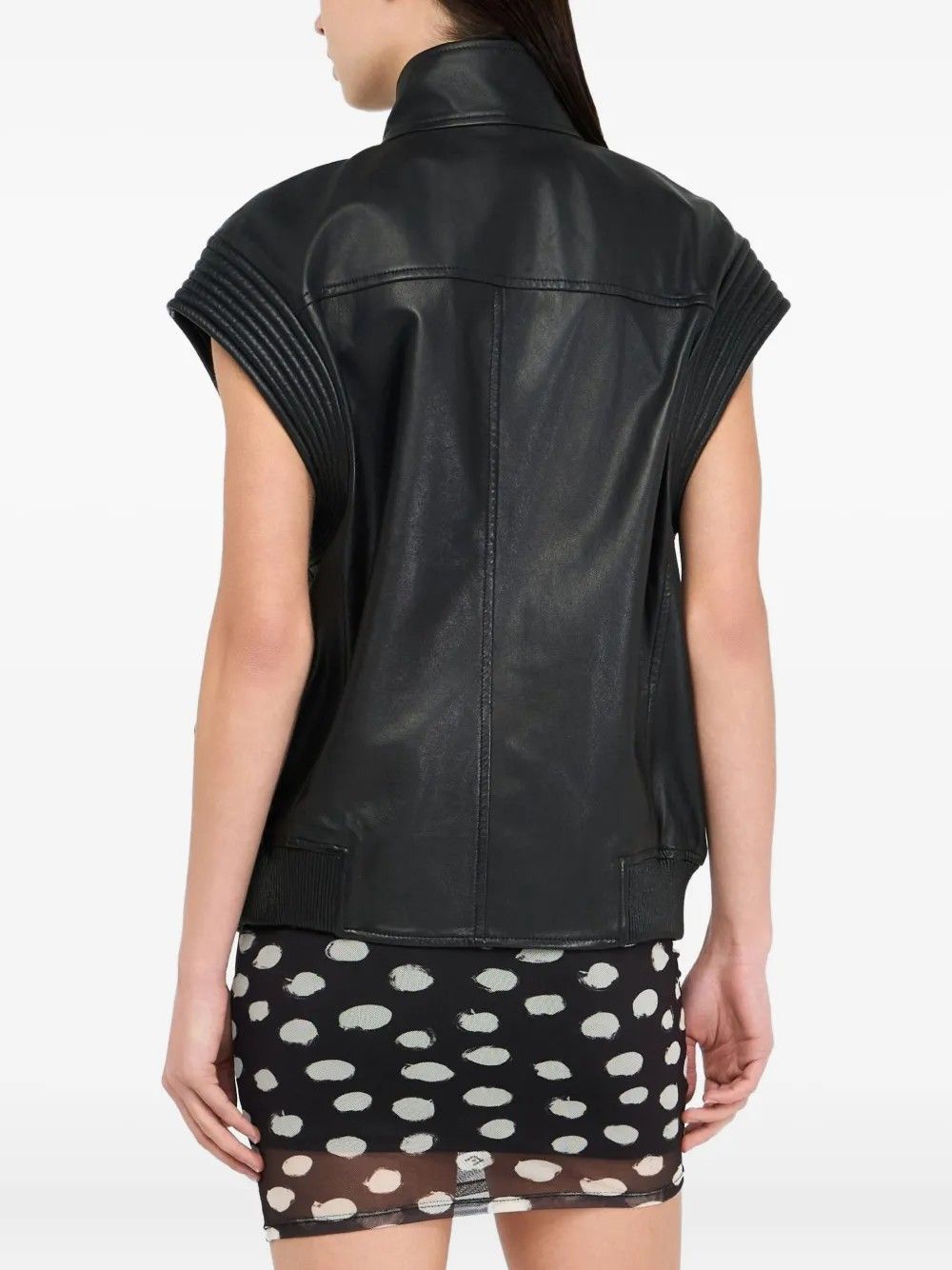 Gilet oversize Liu Jo in similpelle con colletto rialzato e bottoni a pressione.Chiusura con zip e vita elasticizzata per una vestibilità comoda e moderna.Tasche laterali funzionali aggiungono praticità al design.Realizzato in poliestere per resistenza e stile.Linea decisa e contemporanea ideale per look urban e di tendenza.