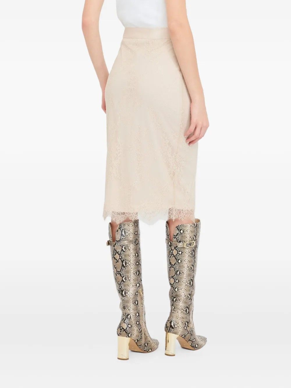 Gonna longuette Liu Jo realizzata in pizzo con raffinato effetto trasparenza.Design al ginocchio che valorizza la femminilità con eleganza.Taglio aderente che segue la silhouette in modo armonioso.Fodera interna per un perfetto equilibrio tra stile e comfort.Dettagli curati che aggiungono un tocco sofisticato e moderno.Perfetta per look da cerimonia o occasioni speciali.