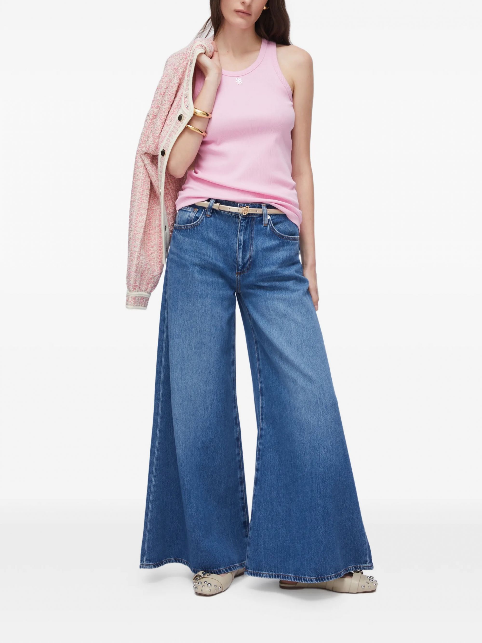 Perfetti per un look casual chic, questi pantaloni si abbinano facilmente con camicie e maglie per ogni occasione. La loro struttura in cotone garantisce durata e una sensazione di morbidezza sulla pelle. Approfitta ora e aggiungi un tocco di eleganza informale al tuo outfit con i jeans a gamba ampia di LIU JO.