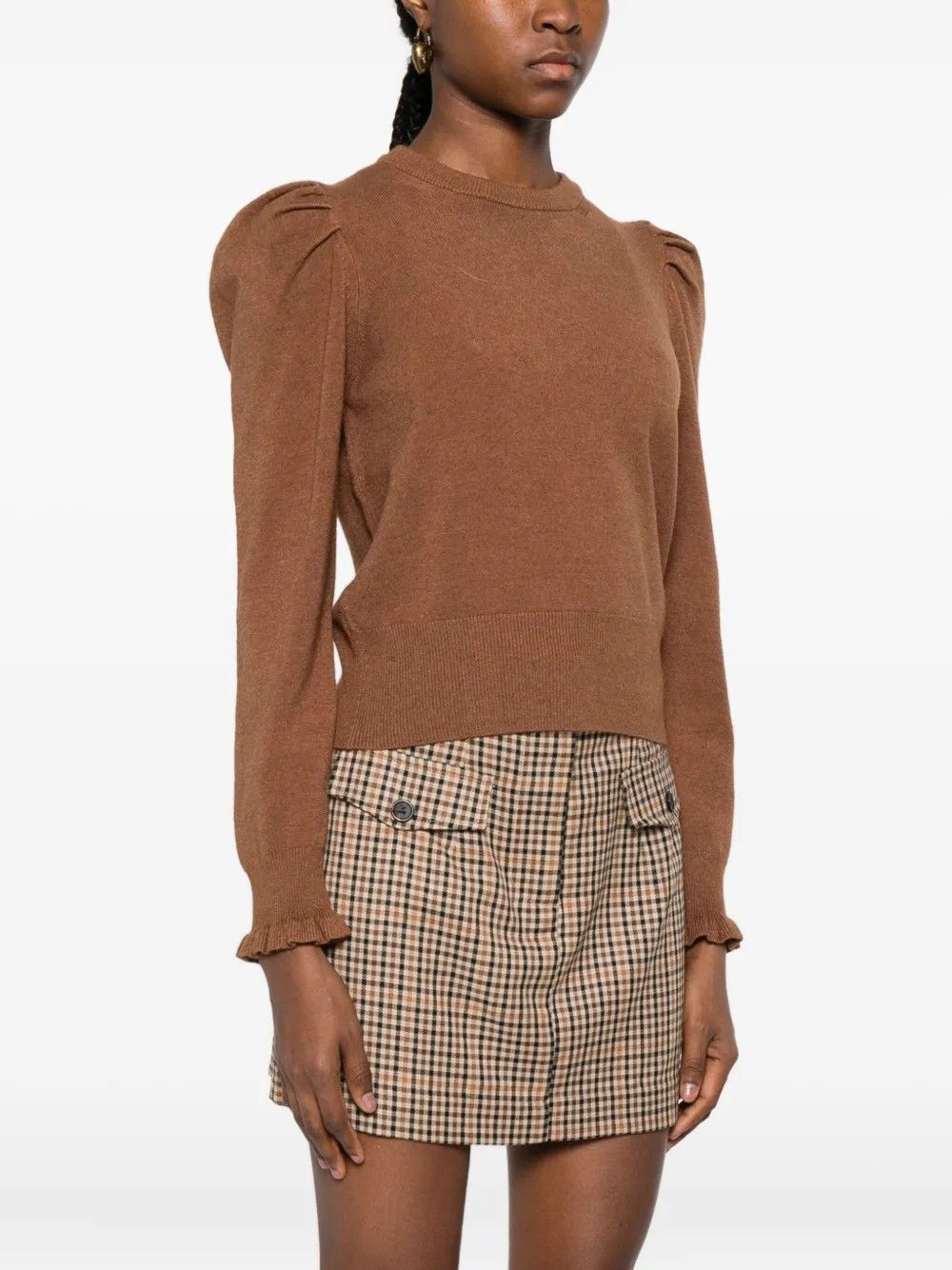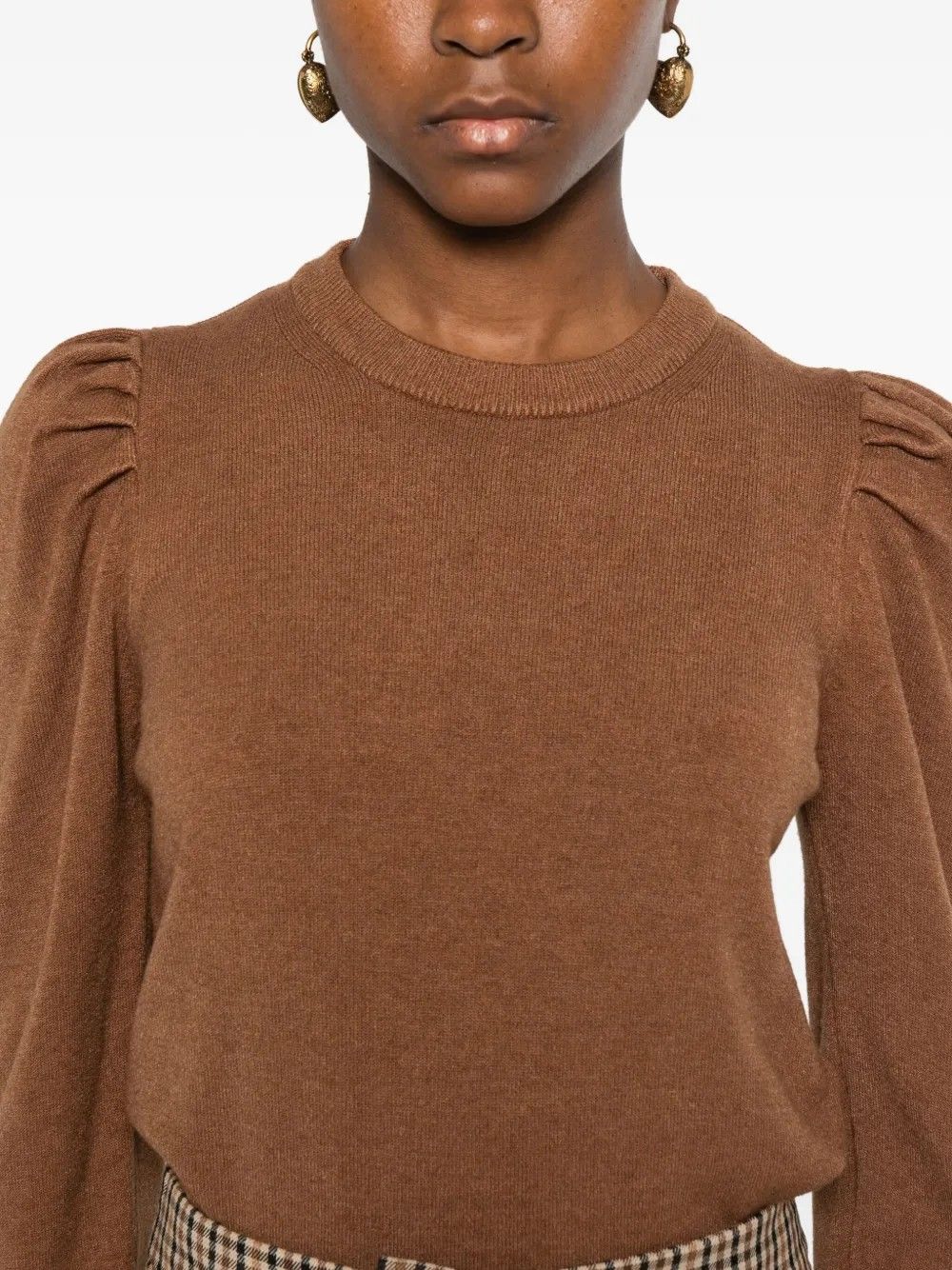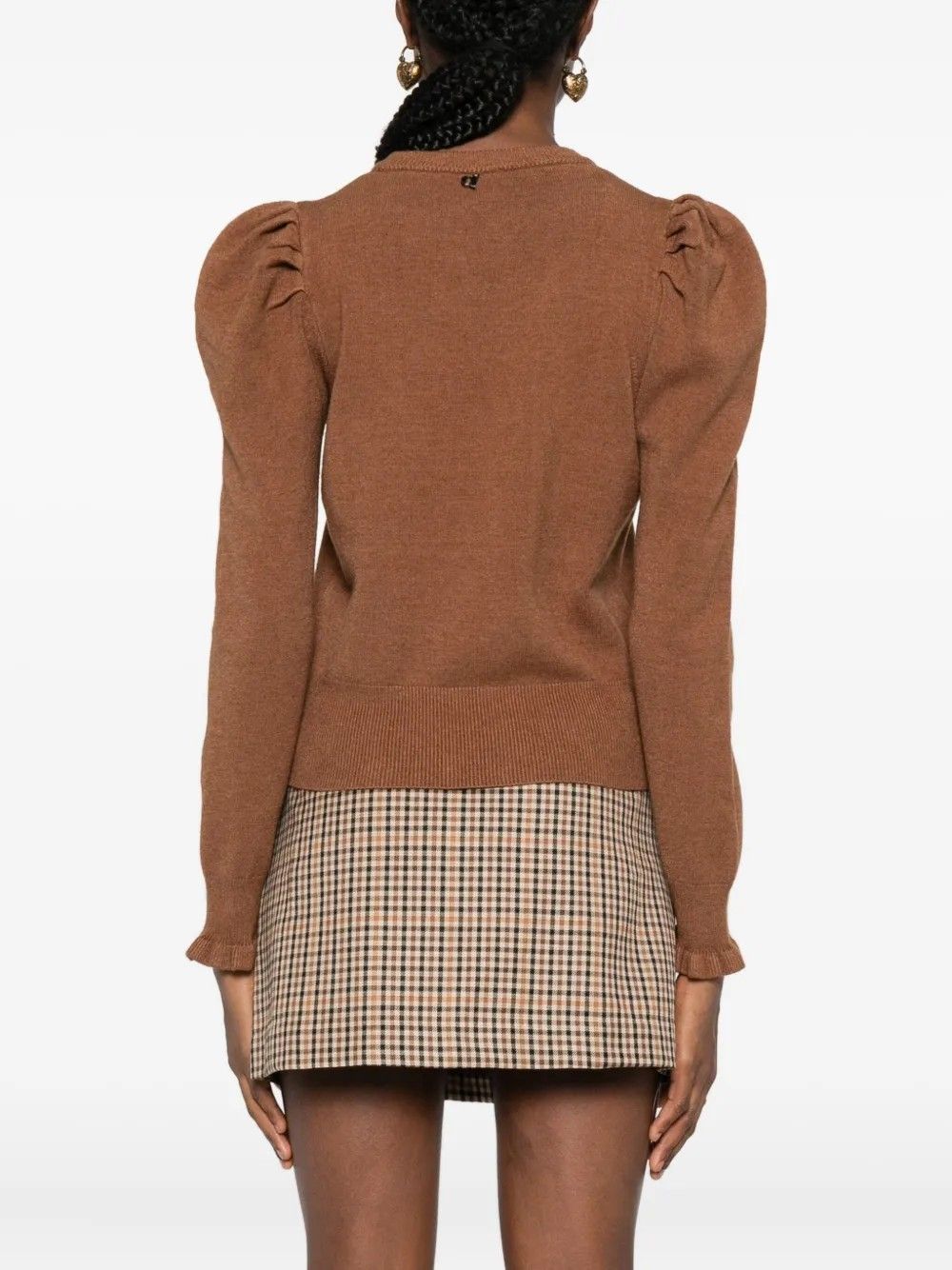 Maglione con maniche a sbuffo e polsini arricciati che donano carattere e femminilitĂ a ogni outfit. Le arricciature sulle spalle aggiungono un tocco originale, mentre la vestibilitĂ confortevole lo rende ideale per la vita quotidiana e le occasioni speciali.
