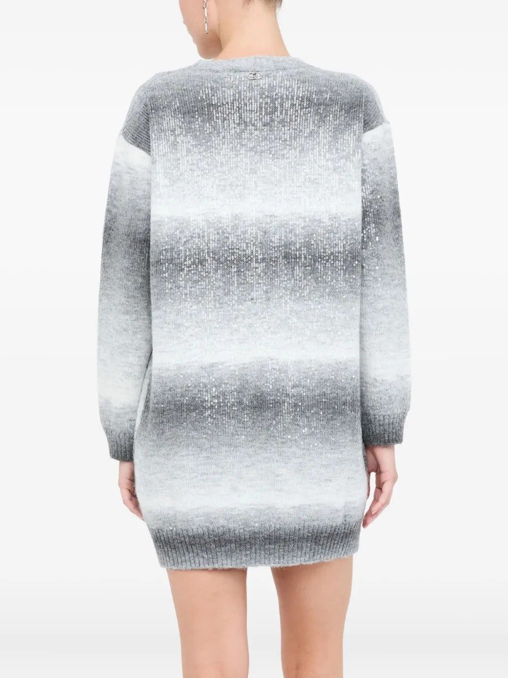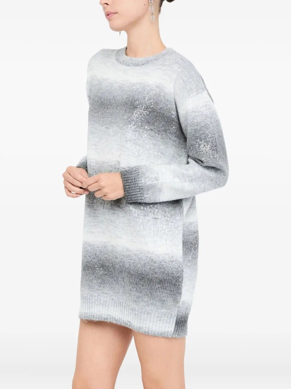 Abito corto in maglia con filati in misto lana, morbido e caldo. Girocollo classico e paillettes all-over per un effetto luminoso e raffinato. Realizzato con materiali di alta qualitĂ per comfort e stile. Perfetto per occasioni speciali o look da sera eleganti e femminili.