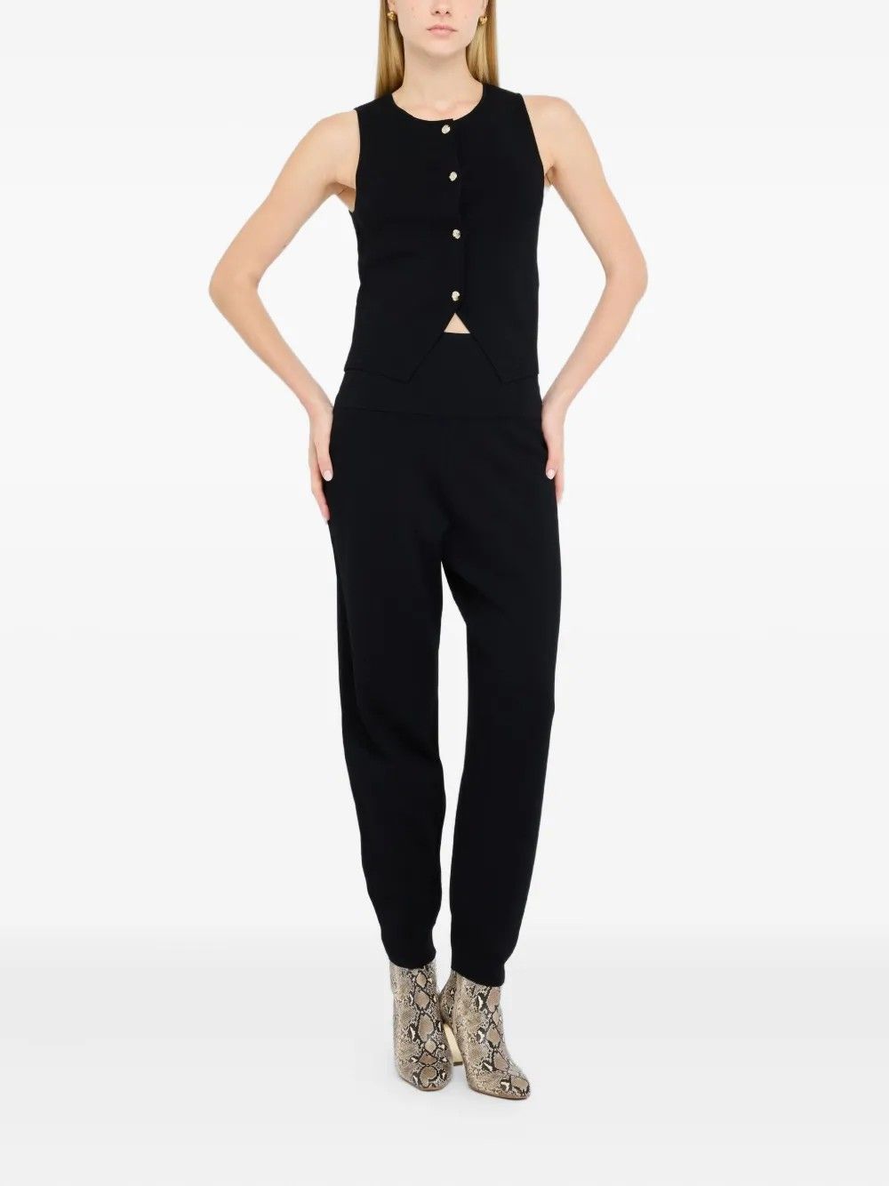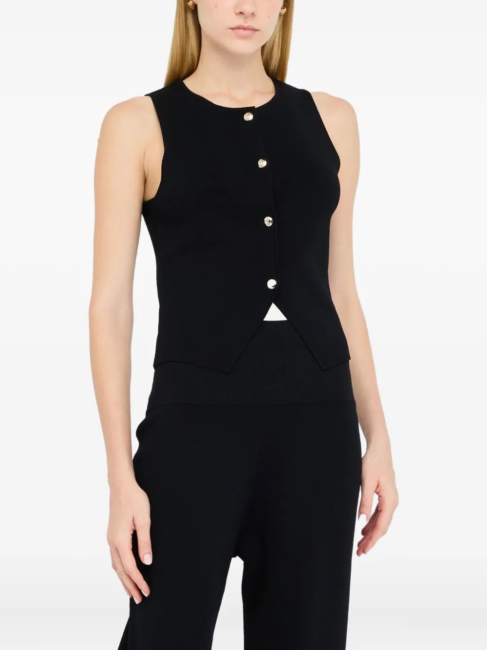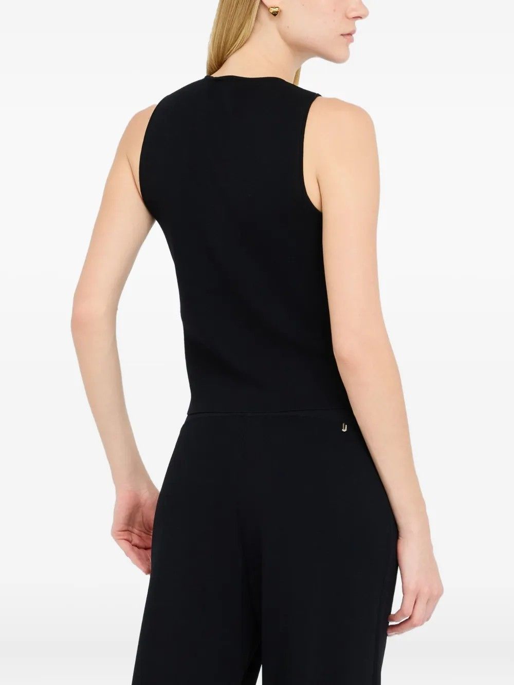 Aggiungi un tocco sofisticato al tuo guardaroba con questo capo di maglieria firmato Liu Jo. Realizzato con cura per offrire comfort e stile, questo gilet nero presenta dettagli con bottoni dorati che ne esaltano l'estetica.