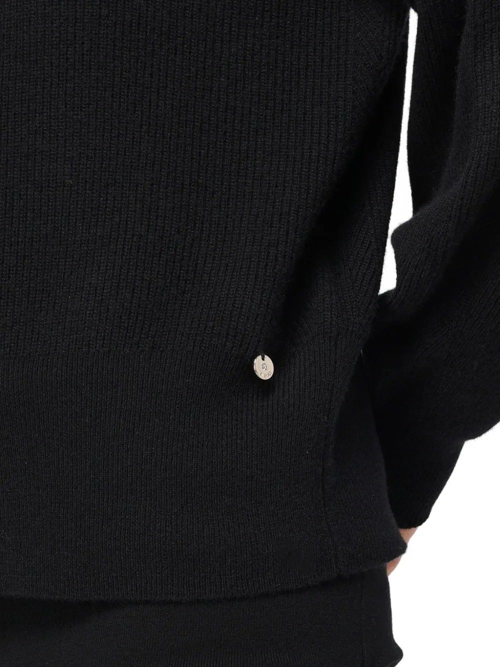 Maglia Liu Jo in pregiata miscela di lana e cashmere caratterizzata da una raffinata lavorazione a costine e da un design femminile e contemporaneo.Il collo alto e le maniche lunghe assicurano calore e comfort, mentre il cut-out sul retro aggiunge un tocco sensuale e inaspettato.Completa il capo una chiusura con perle gioiello che dona eleganza e luminosità , rendendolo perfetto per valorizzare il look con discreta sofisticatezza.