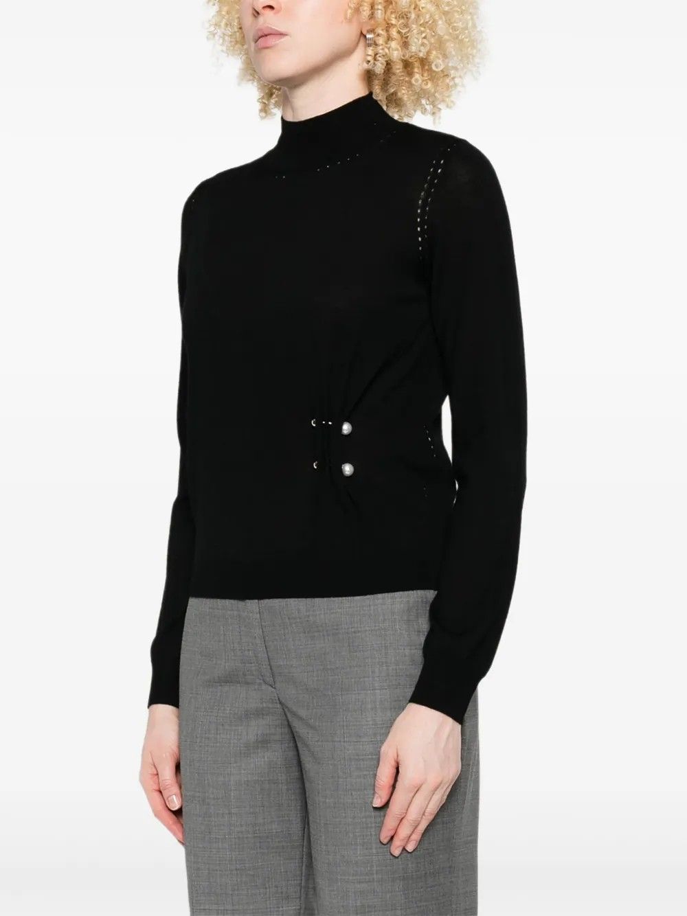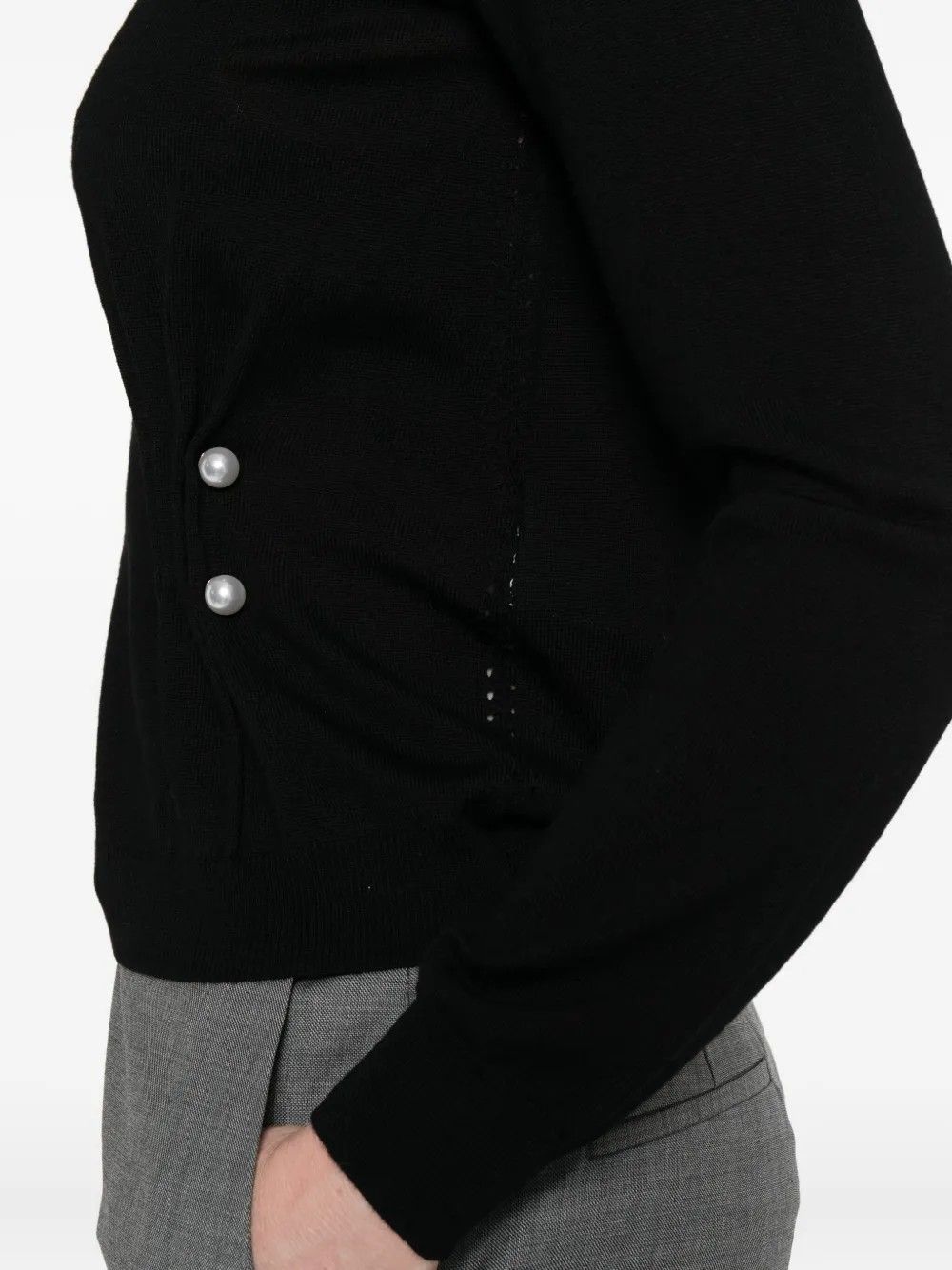 Maglia Liu Jo realizzata in lana con motivo arricciato impreziosito da perle.Il collo alto e le maniche lunghe assicurano calore e comfort.I bordi a costine completano un design raffinato e femminile.Un capo versatile perfetto per look eleganti e quotidiani.Realizzata con materiali di alta qualità per durabilità e stile.Classico e contemporaneo si incontrano in questo modello.