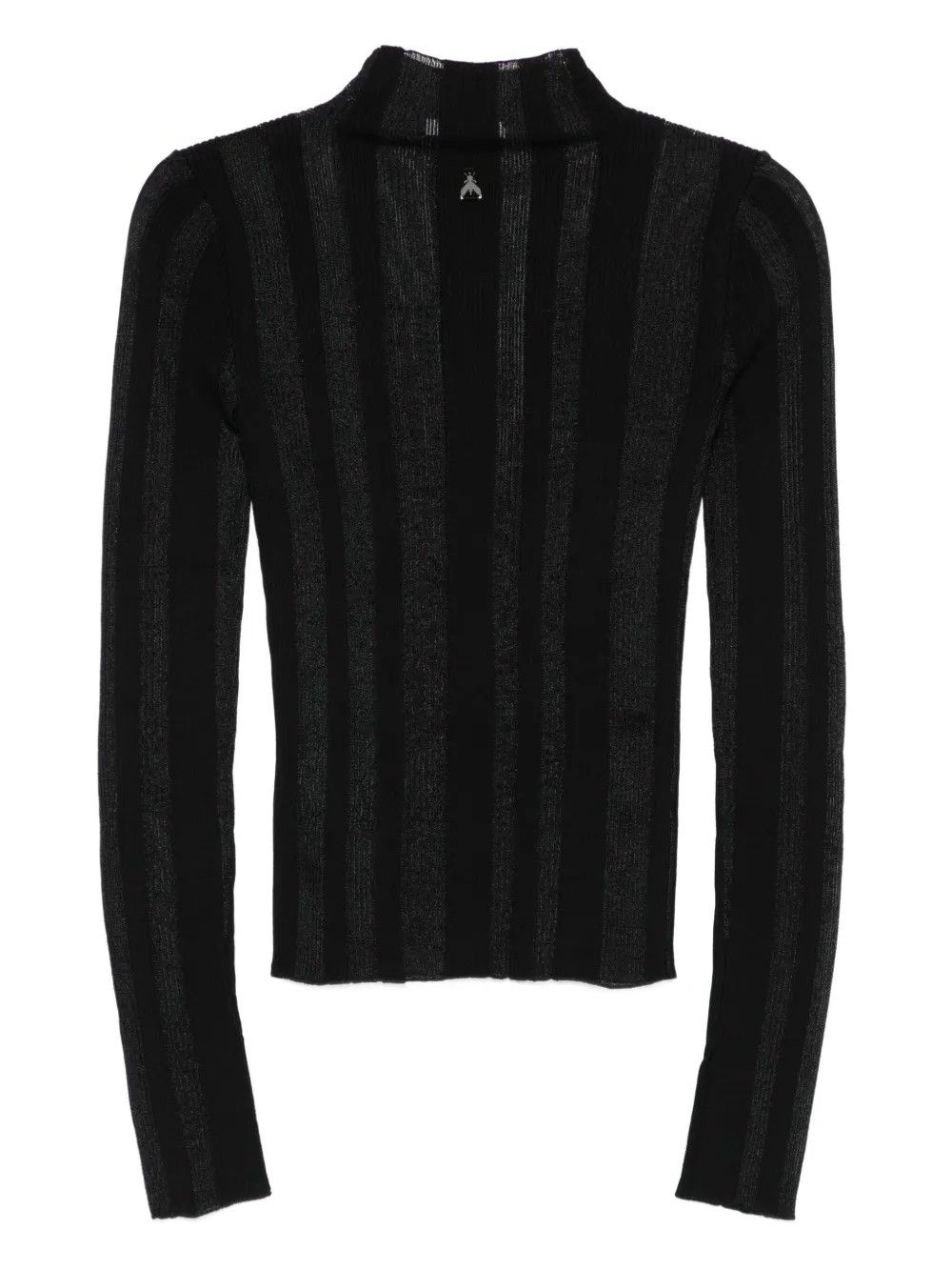Maglione a costine con lavorazione semi trasparente e righe verticali.Girocollo e maniche lunghe per un look essenziale e raffinato.VestibilitĂ  aderente che valorizza la silhouette.Tessuto leggero e flessibile per un comfort quotidiano.Perfetto da indossare da solo o in layer sotto blazer strutturati.Design versatile per outfit day-to-night.