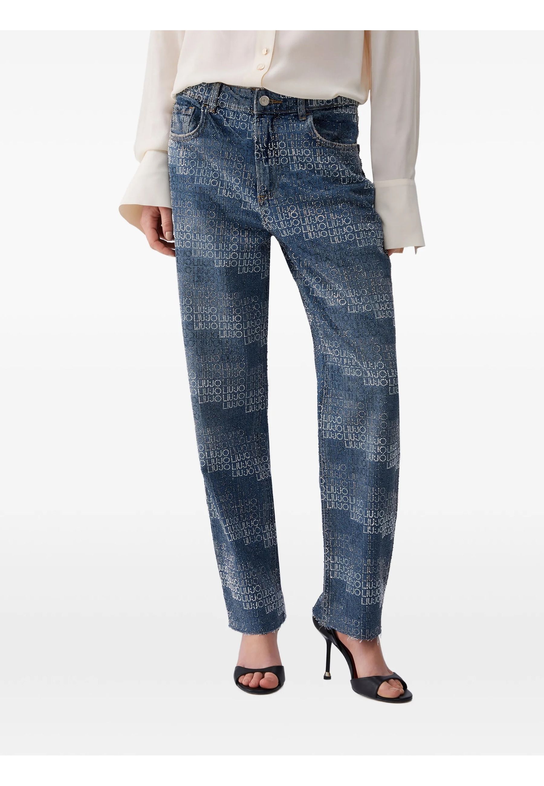Scopri i pantaloni in denim firmati LIU JO, modello UA6019D4854 78977, perfetti per uno stile casual e contemporaneo. Questi jeans sono caratterizzati da un moderno motivo con logo stampato che valorizza il design classico.