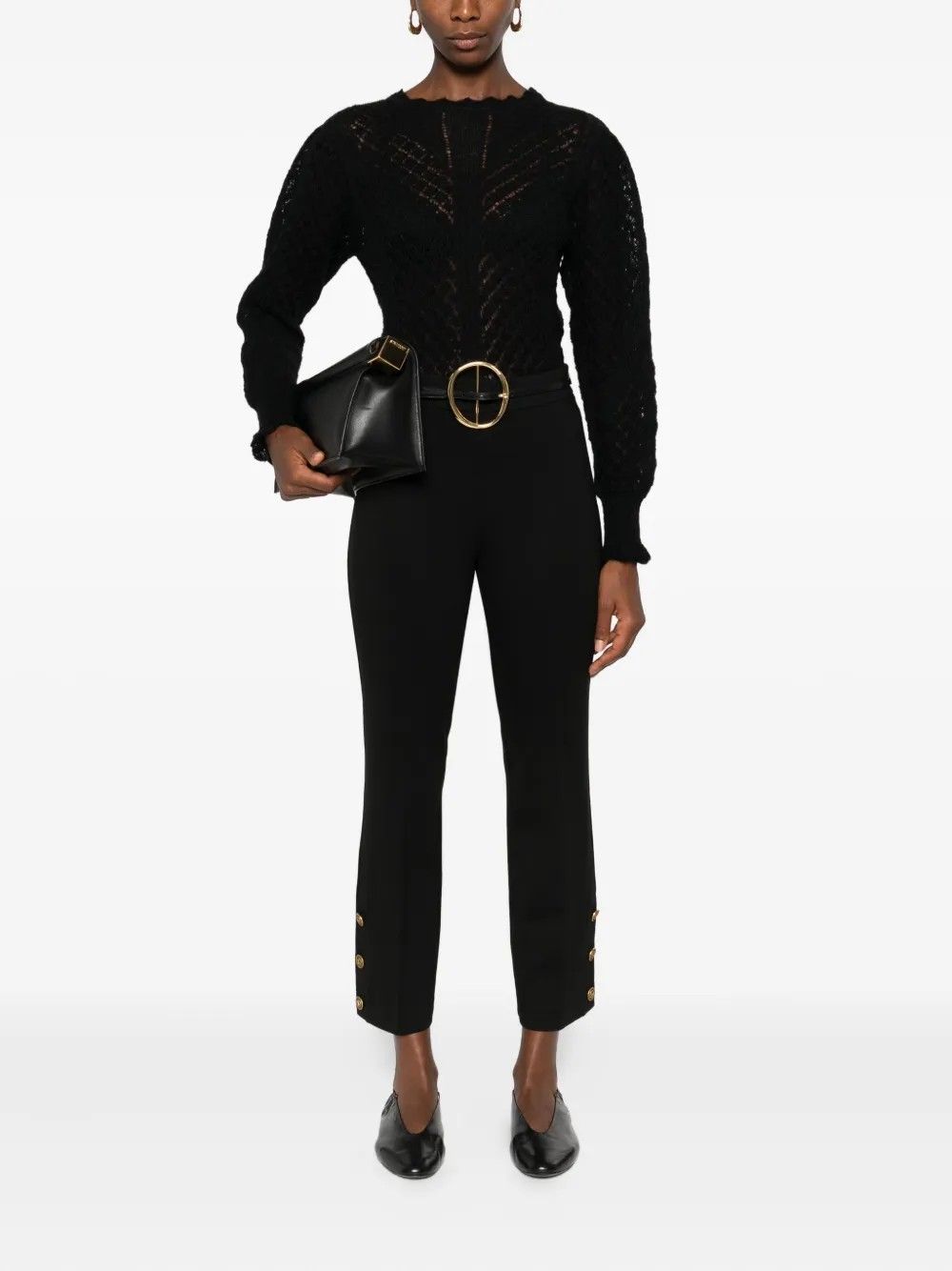 Pantaloni Twinset cropped in punto Milano di viscosa con linea dritta.Chiusura laterale con zip invisibile per un effetto pulito.Bottoni logati Oval T applicati al fondo per un dettaglio distintivo.Materiale morbido e confortevole che assicura vestibilitĂ perfetta.Modello versatile ideale per look sofisticati e contemporanei.Design minimal e raffinato.