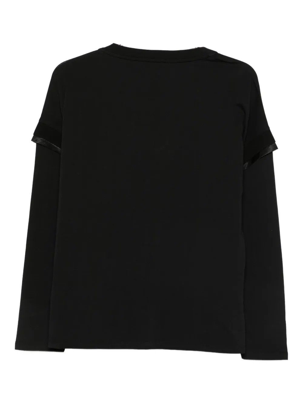 La t-shirt a maniche lunghe si distingue per il dettaglio con nastro applicato sulle spalle, che aggiunge un tocco di originalità al design. Realizzata in cotone 100%, garantisce comfort e traspirabilità durante tutto il giorno. Il modello presenta un girocollo classico e un elegante dettaglio logo, ideale per completare look casual con stile contemporaneo.