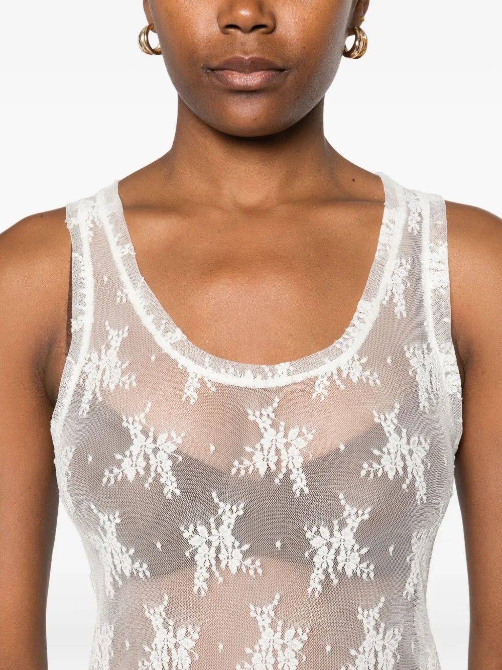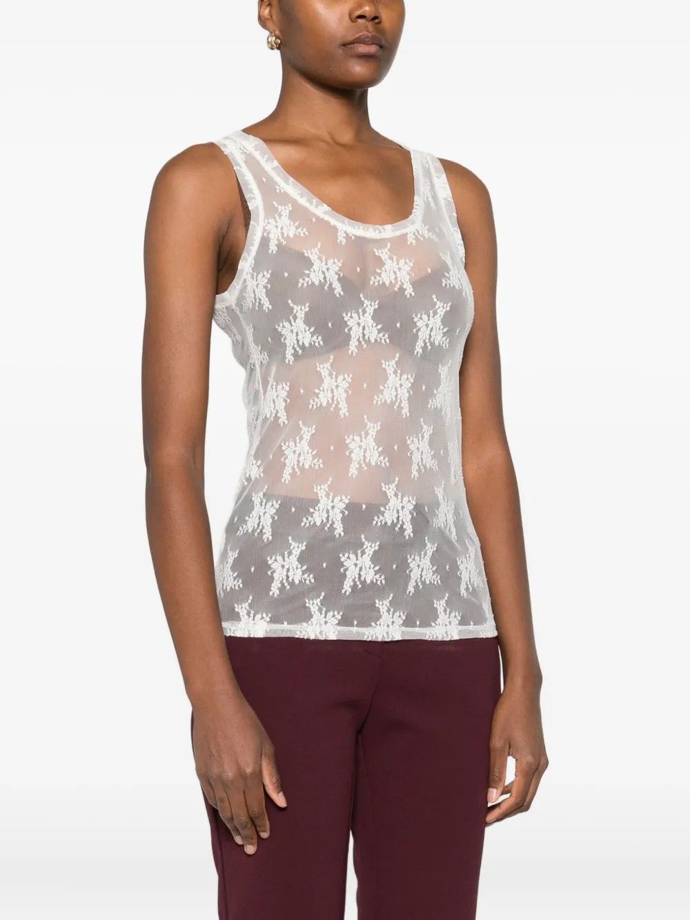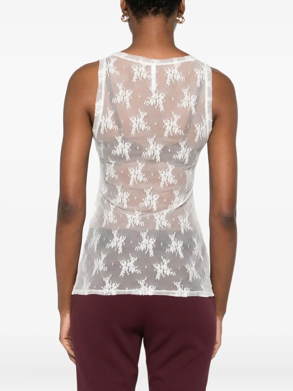 Scopri il top in pizzo di Imperial, un'aggiunta versatile e chic al tuo guardaroba. Realizzato in raffinato pizzo trasparente, questo capo affascina con il suo design senza maniche, perfetto per aggiungere un tocco elegante ai tuoi outfit. Ideale da indossare sopra una canotta o un bralette, si presta a combinazioni sia casual che sofisticate.