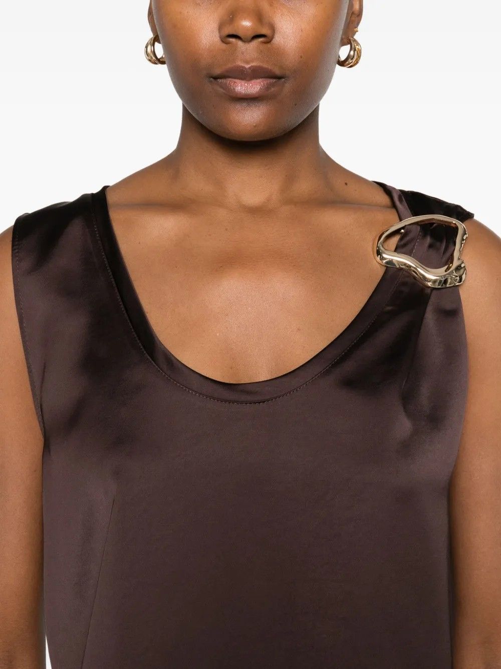 Scopri il top di IMPERIAL, un'aggiunta sofisticata al tuo guardaroba. Perfetto per ogni occasione, questo capo si distingue per il suo design raffinato e l'elegante dettaglio in oro sullo spallino. Facile da abbinare con i tuoi outfit preferiti.