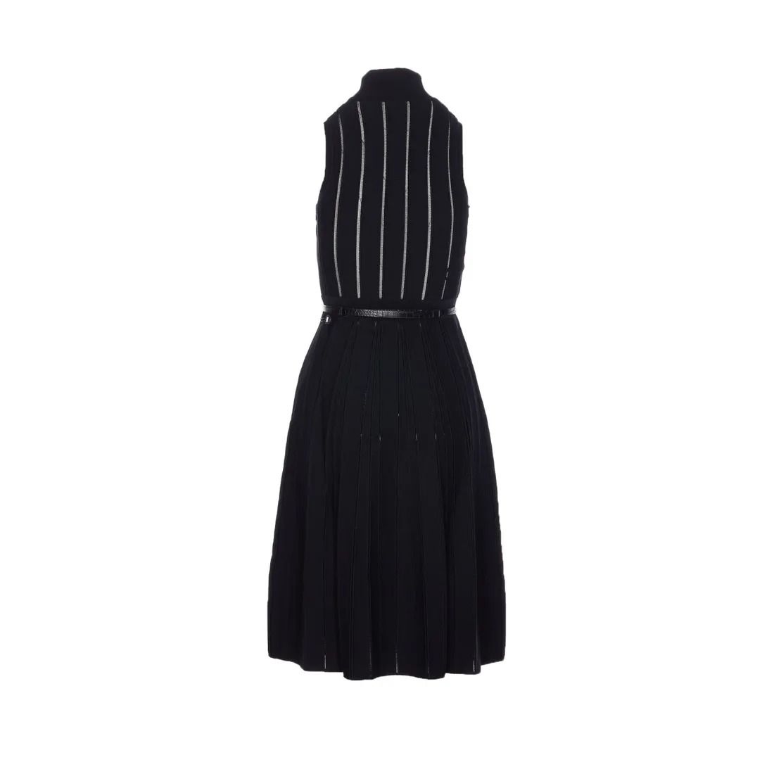 Il vestito presenta una silhouette sofisticata con dettagli verticali che slanciano la figura, mentre la cintura in vita aggiunge un tocco di classe. Ideale per enfatizzare la tua femminilità.